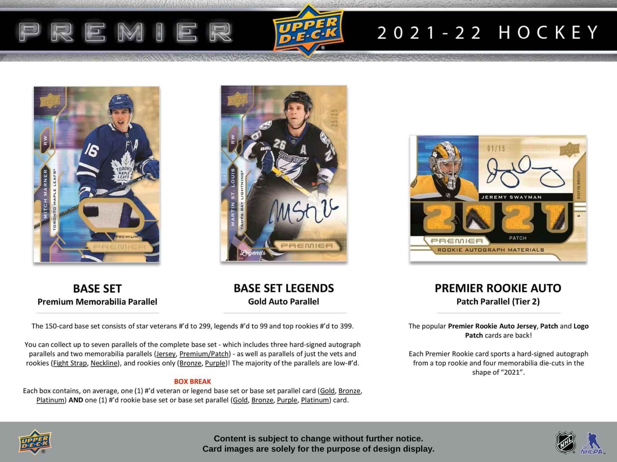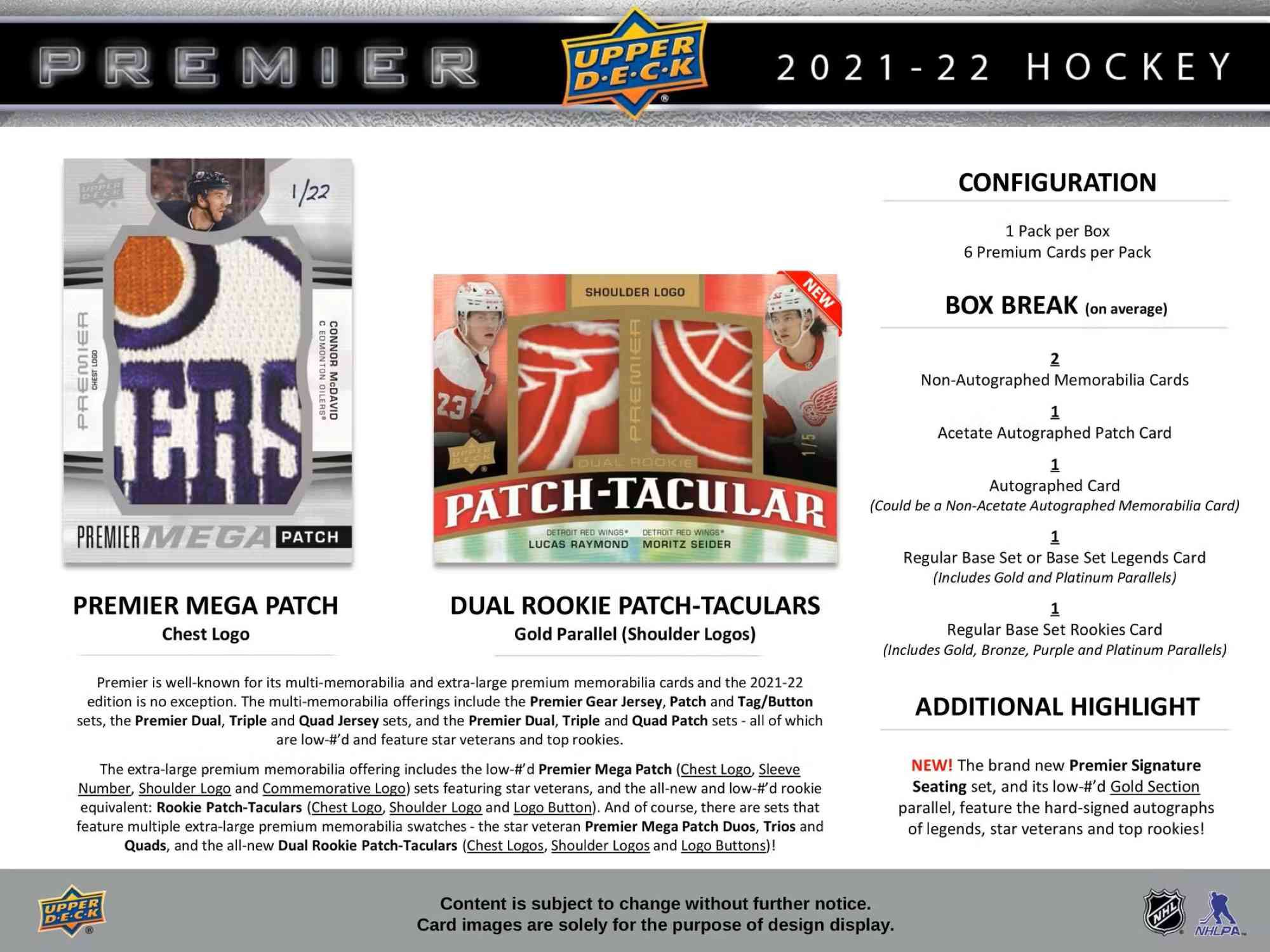 2021/22 Upper Deck Premier Hockey Hobby Box NHL
