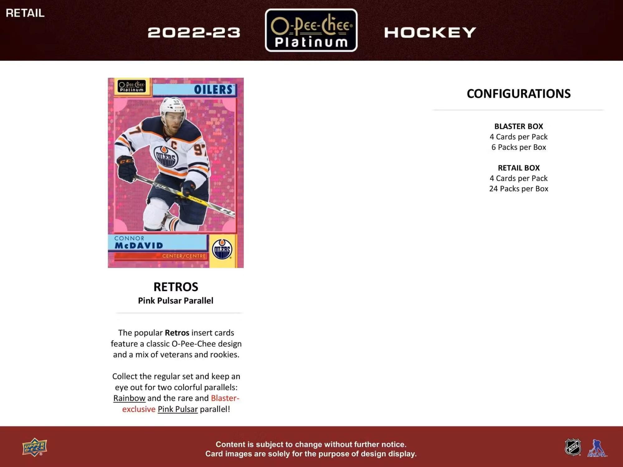 Suchen Sie nach O=Pee-Chee Platinum Retros-Insertkarten mit einem klassischen O-Pee-Chee-Design und einer Mischung aus Veteranen und Rookies. Sammeln Sie die regulären Exemplare und halten Sie Ausschau nach zwei farbenfrohen Parallelen: Rainbow und das seltene und Blaster-exklusive Pink Pulsarparallel!