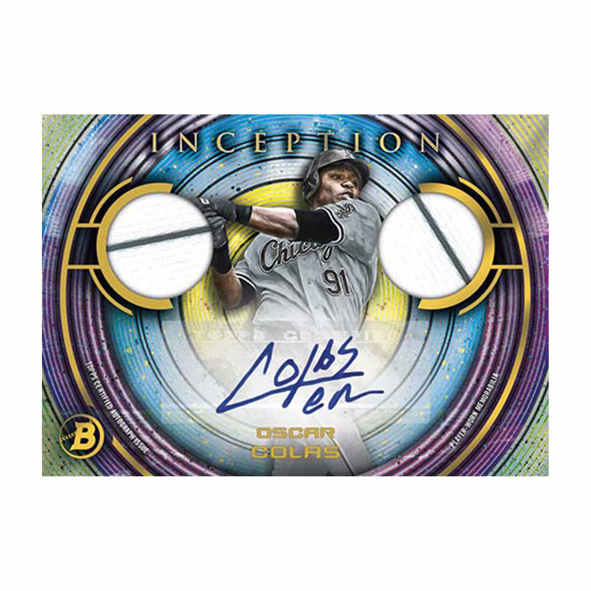 Bowman Inception Autographs bieten eine leichte Anpassung an das Basisdesign. Parallelen sind auch ähnlich mit Blue Foil (/99), Fuchsia Foil (/75), Gold Foil (/50), Gold Foil Pattern II (/50), Orange Foil (/25), Red Foil (/5) und FoilFractors (1/1).