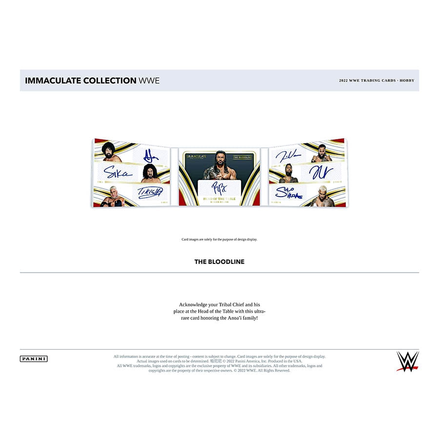 Eine originalverpackte (OVP) Sammelkarten Box von 2022 Panini Immaculate WWE Wrestling Hobby Box mit 1 Packung Per Box, 6 Karten Per Packung.