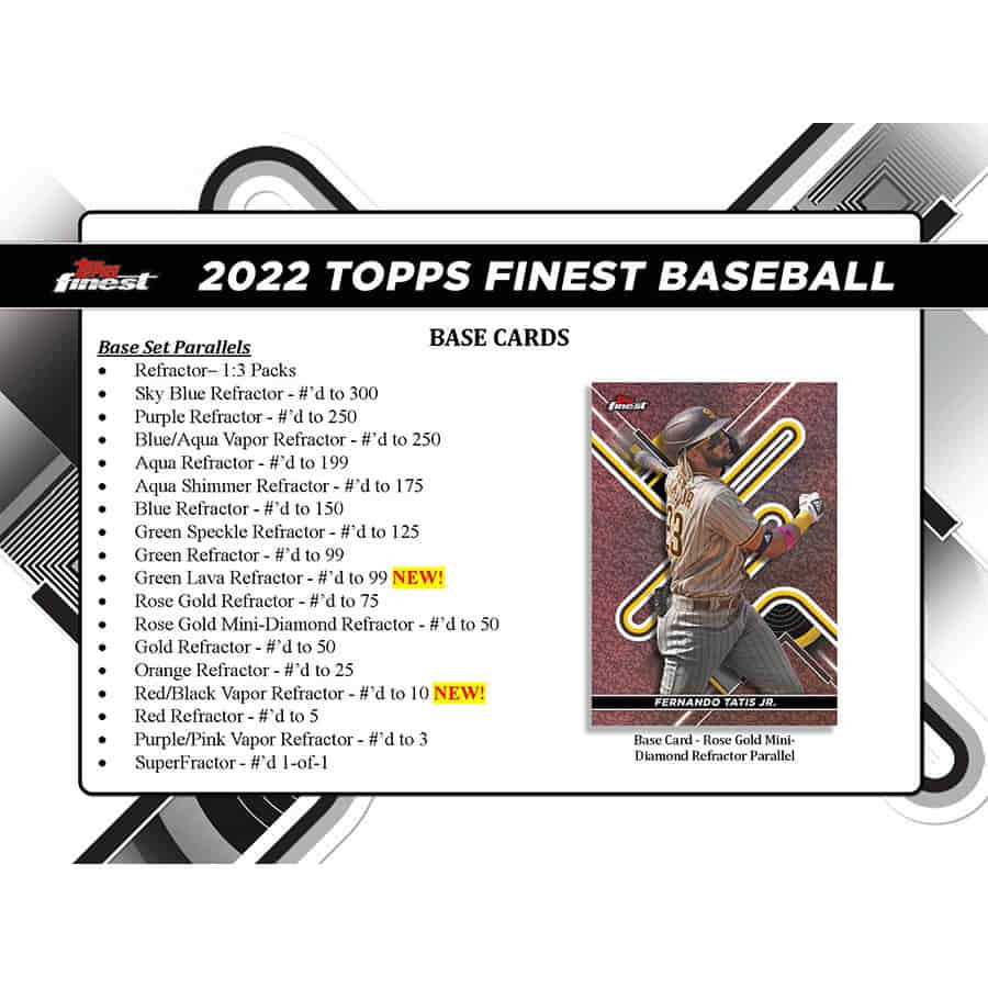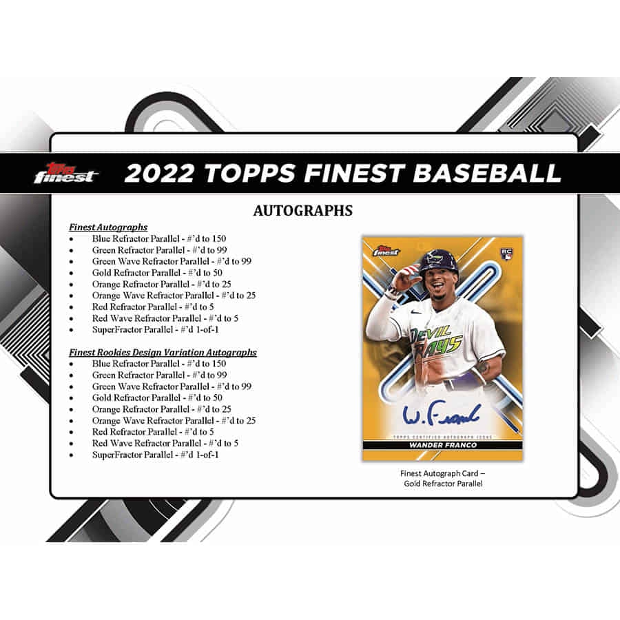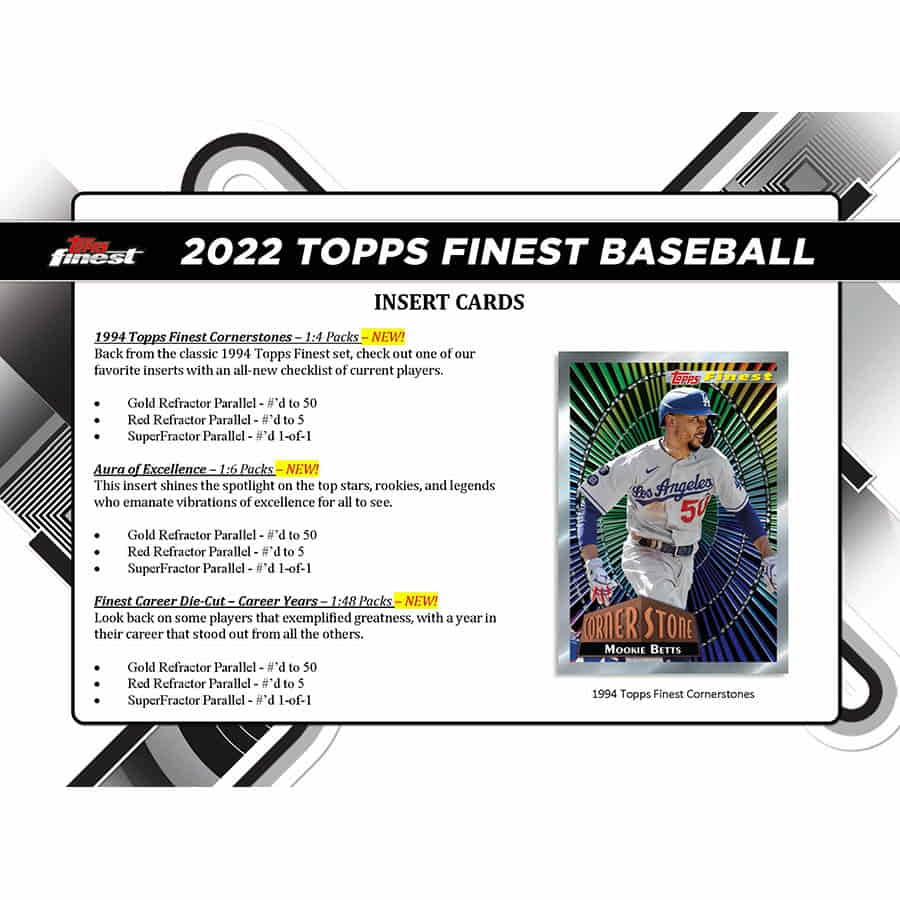 2022 Topps Finest Baseball zeichnet sich durch wunderschön eclectische Designs und Insert-Themen auf Chromtechnologie aus.