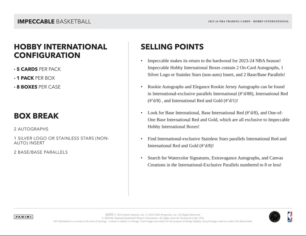 2023/24 Panini Impeccable Basketball NBA International Hobby Box