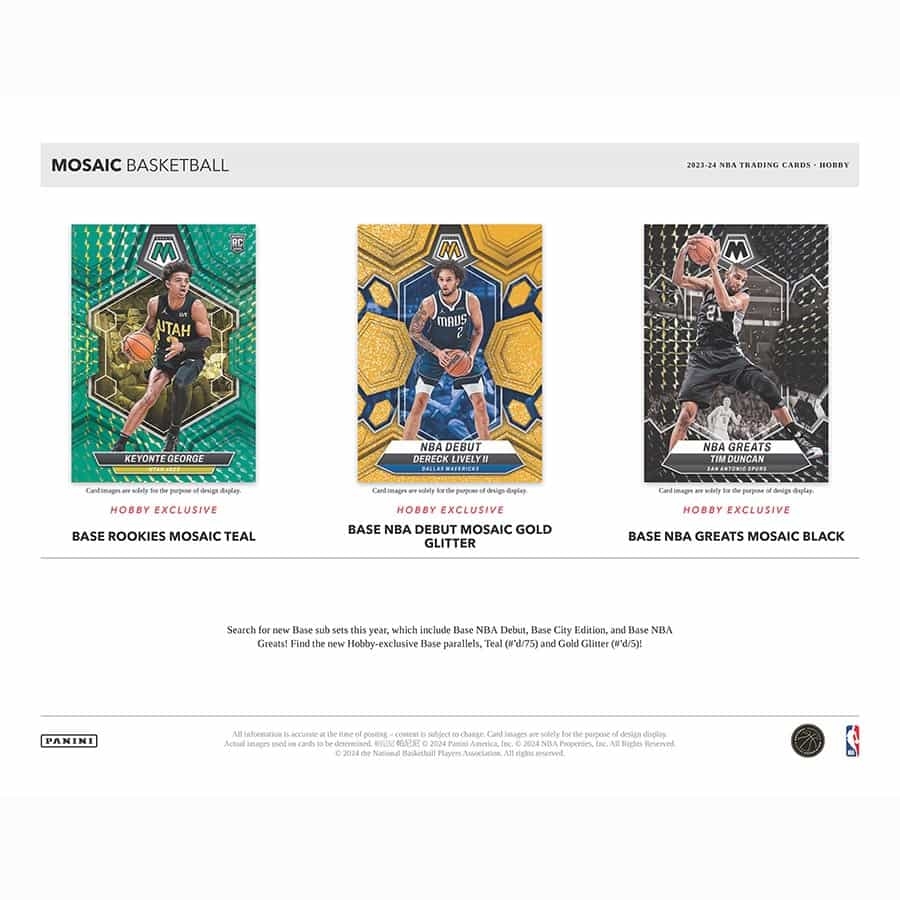 Eine originalverpackte (OVP) Sammelkarten Box aus der 23-24 Mosaic Basketball Serie von Panini mit 10 Packungen per Box, 15 Karten per Packung.