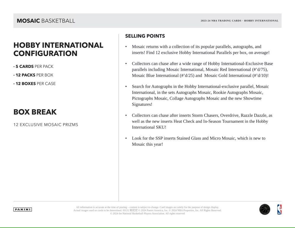 2023/24 Panini Mosaic Basketball NBA International Hobby Box