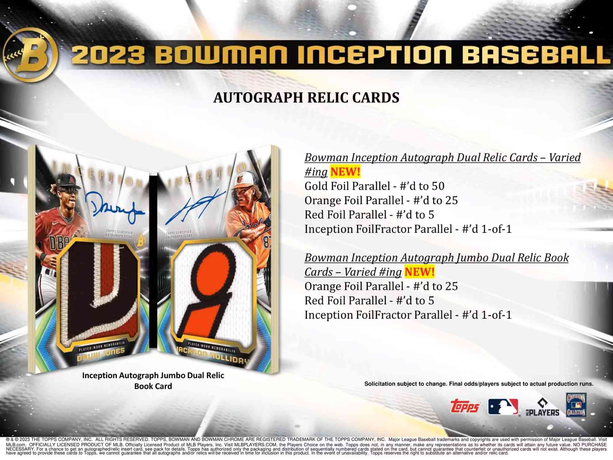 Bowman Inception Autograph Jumbo Dual Relic Book Cards: Varied #ing NEW!