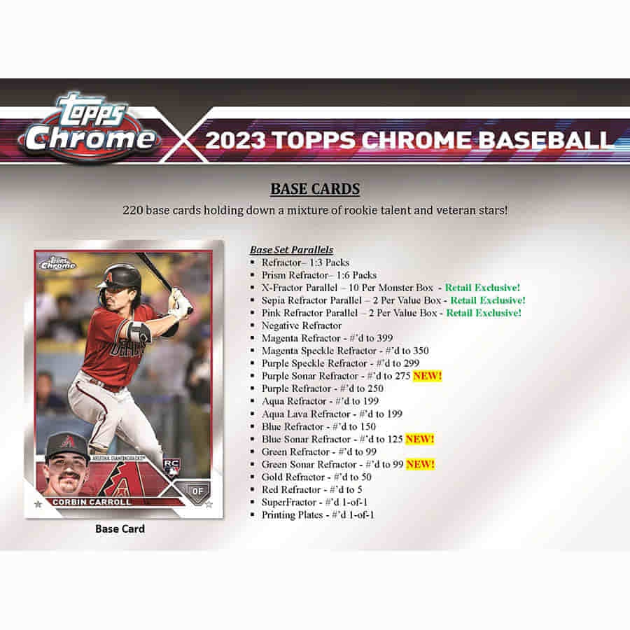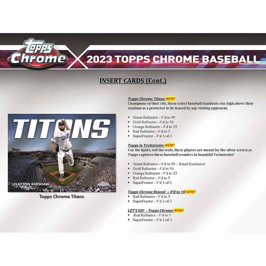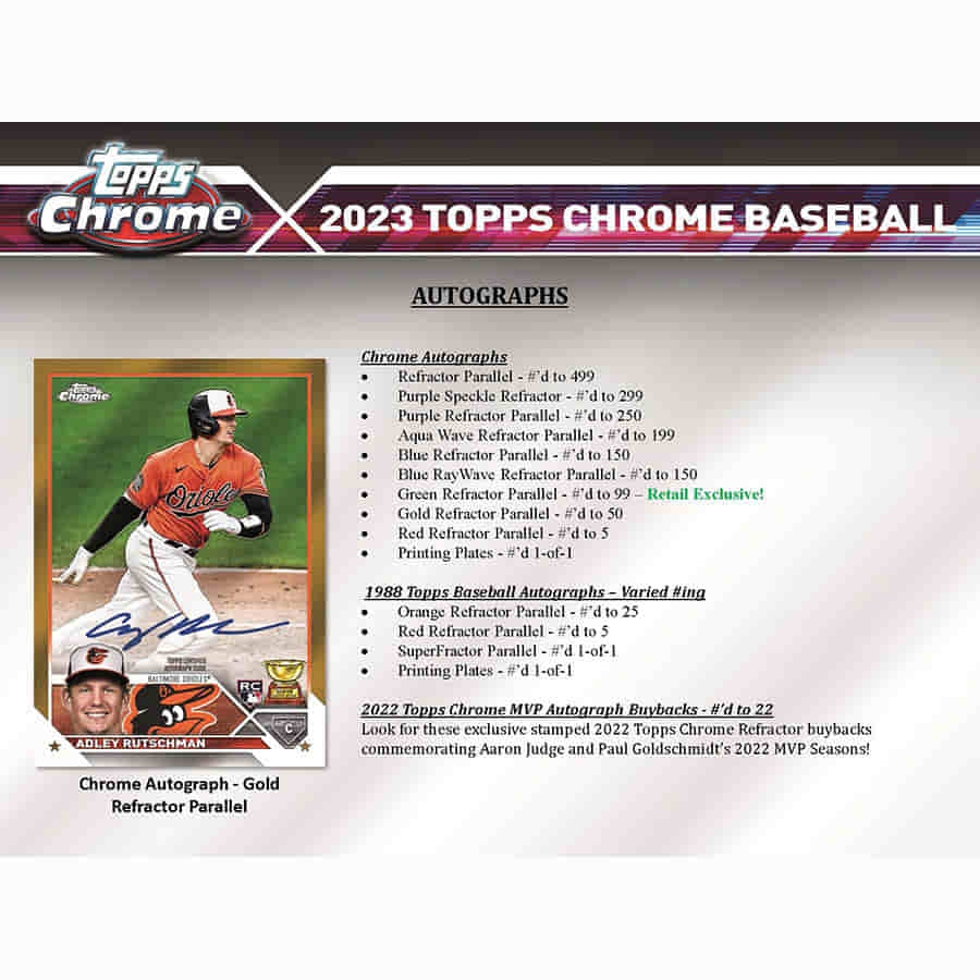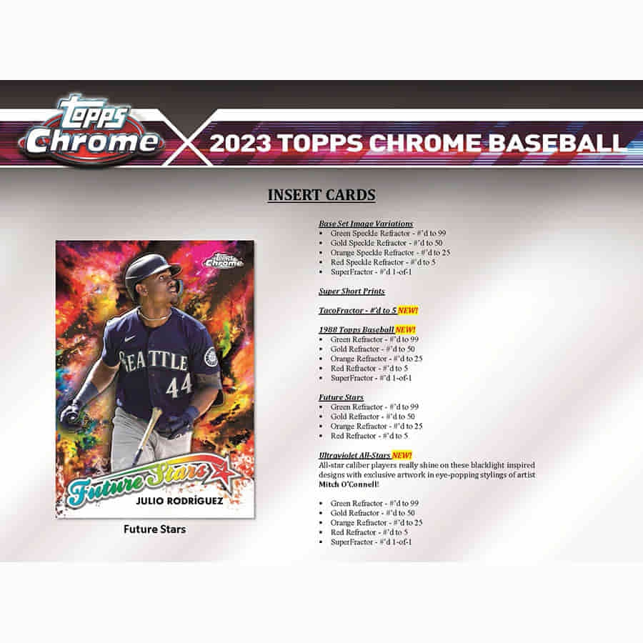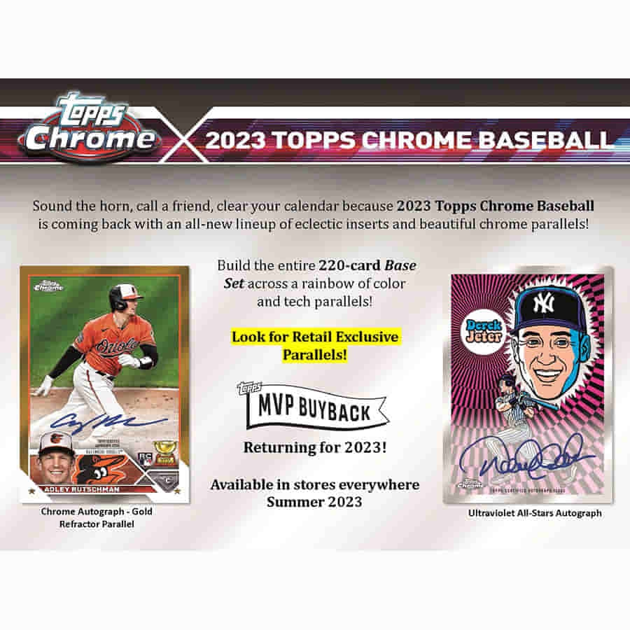 Lass die Sirene heulen, rufe einen Freund an und räume deinen Kalender frei, denn 2023 Topps Chrome Baseball kehrt zurück mit einer völlig neuen Auswahl an vielfältigen Inserts und wunderschönen Chrome-Parallels!