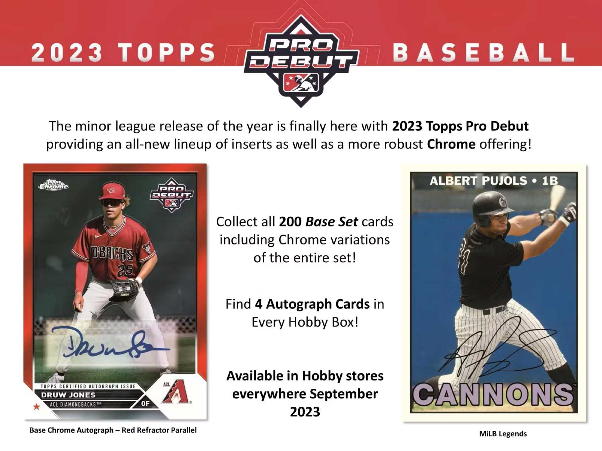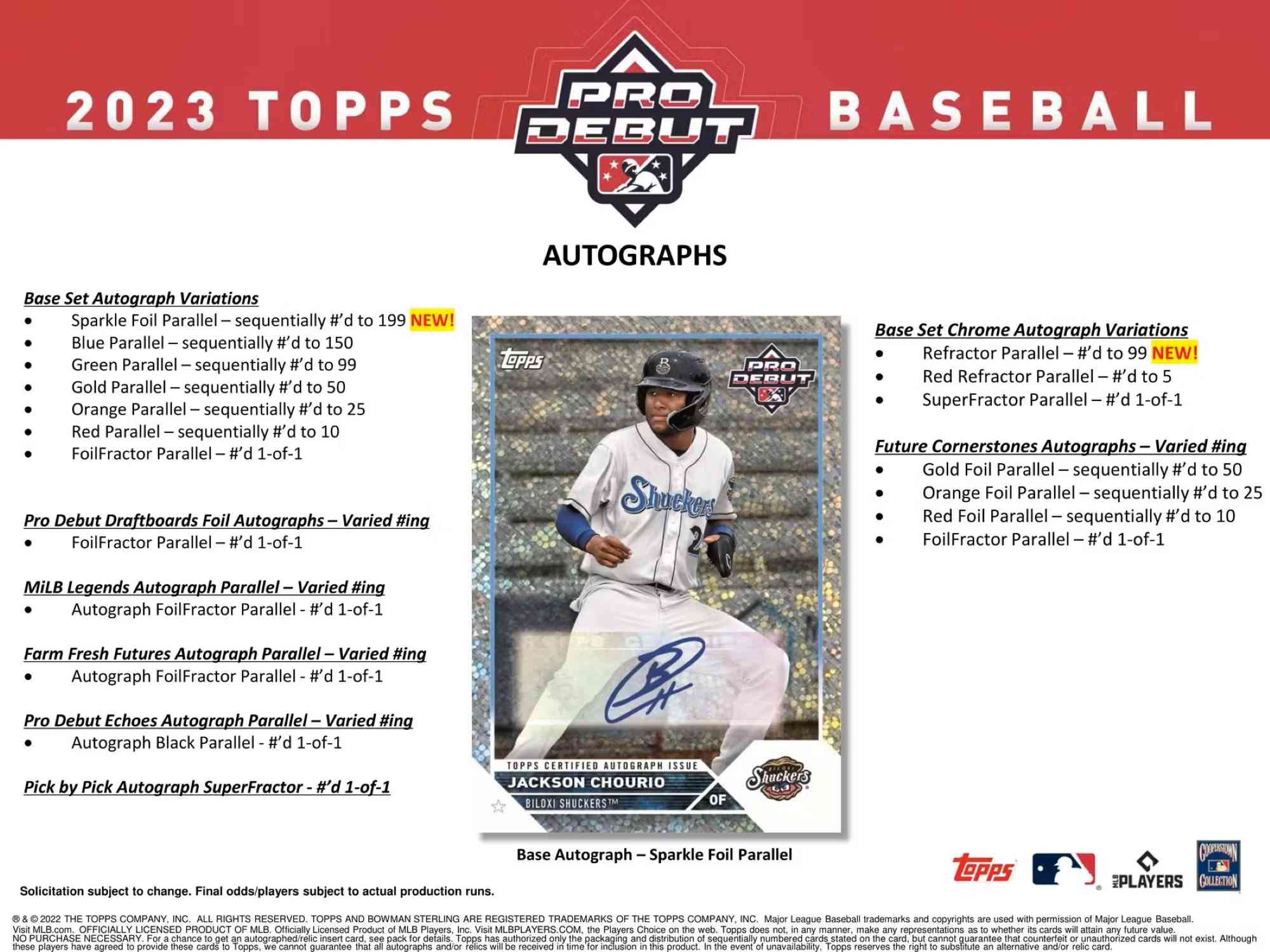 Die Minor-League-Veröffentlichung des Jahres ist endlich da mit 2023 Topps Pro Debut, das eine brandneue Auswahl an Inserts sowie ein umfangreicheres Chrome-Angebot bietet!