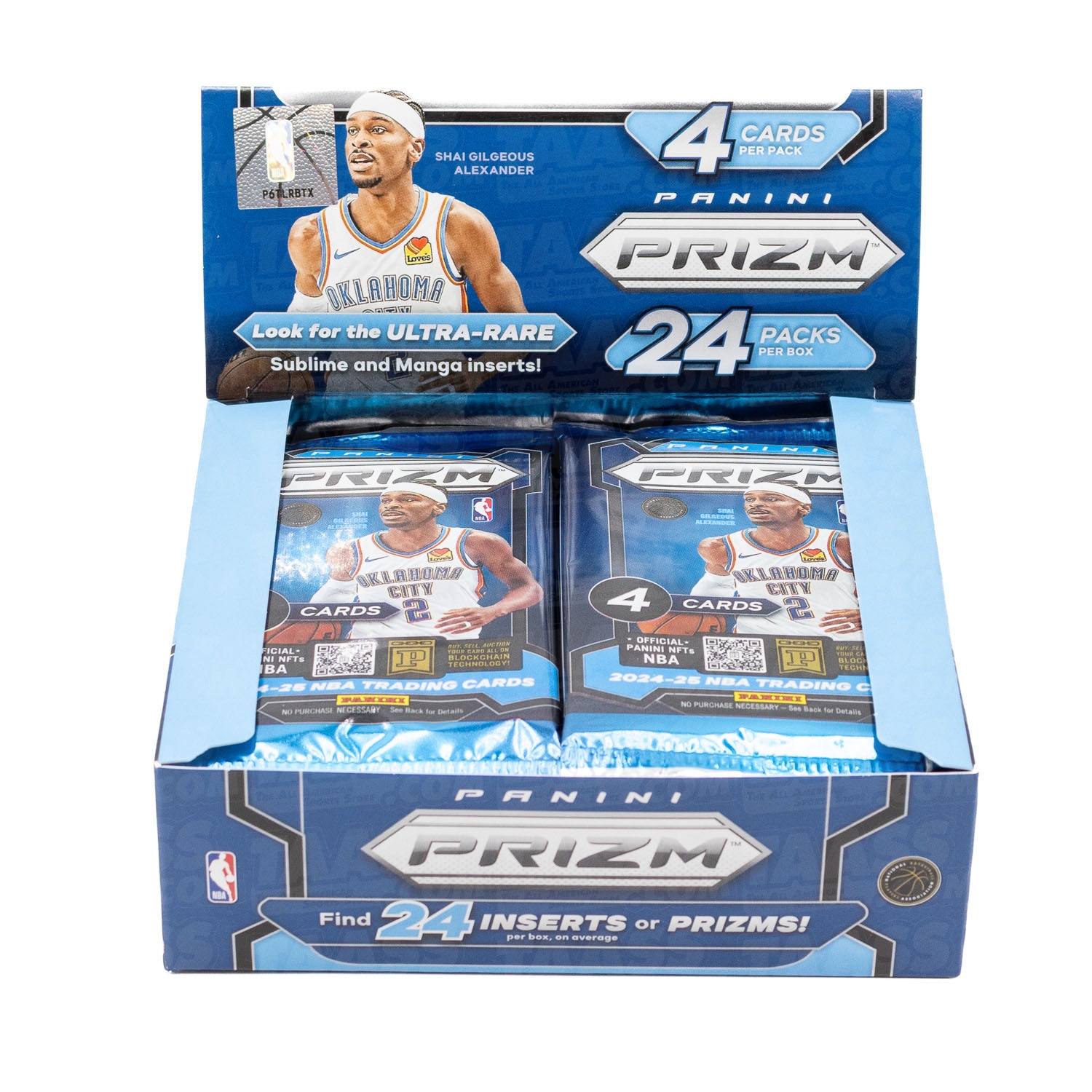 Eine originalverpackte (OVP) Sammelkarten Box aus der Prizm Serie von Panini mit 24 Packungen per Box, 4 Karten per Packung.