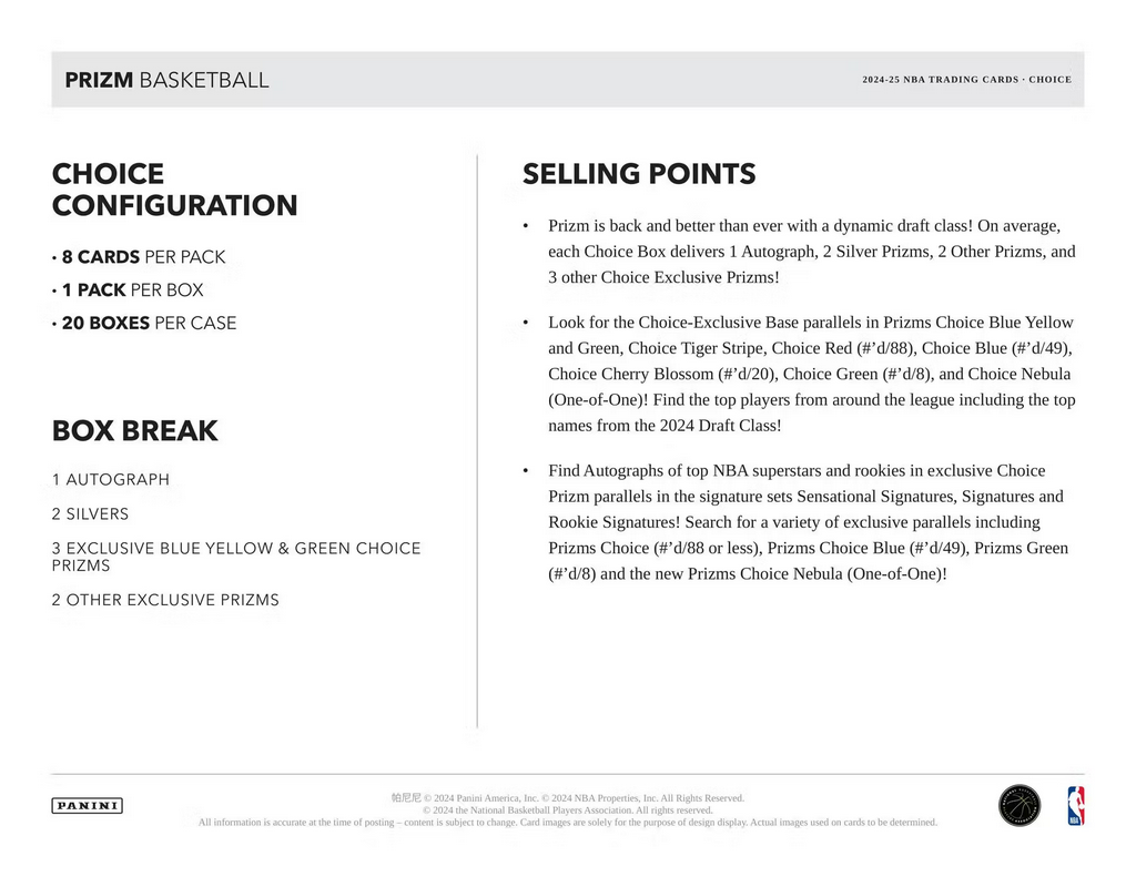 2024/25 Panini Prizm Choice Basketball NBA Hobby Box