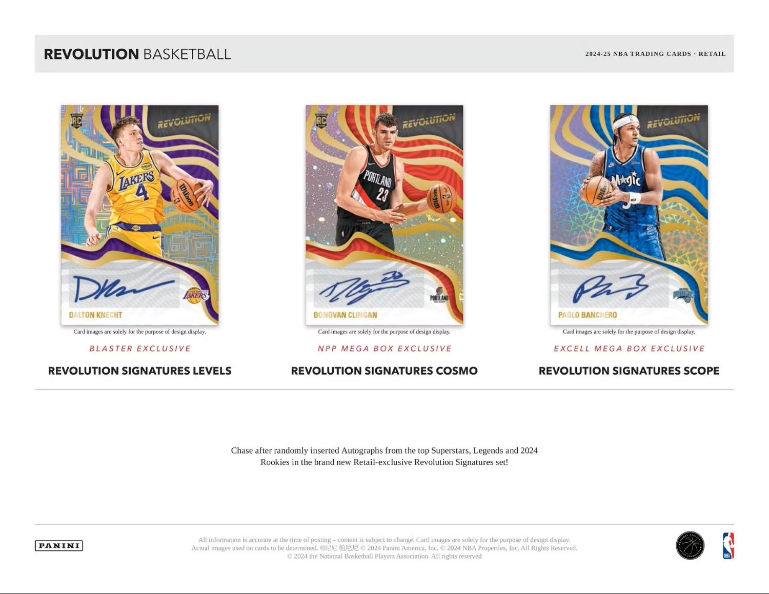 Jagd nach zufällig eingefügten Autogrammen der Top-Superstars, Legenden und NBA-Rookies 2024 im brandneuen handelsexklusiven Revolution Signatures-Set! Finde dieses Set im NPP Mega Box-exklusiven Cosmo-Parallelen (Nr. 35)!