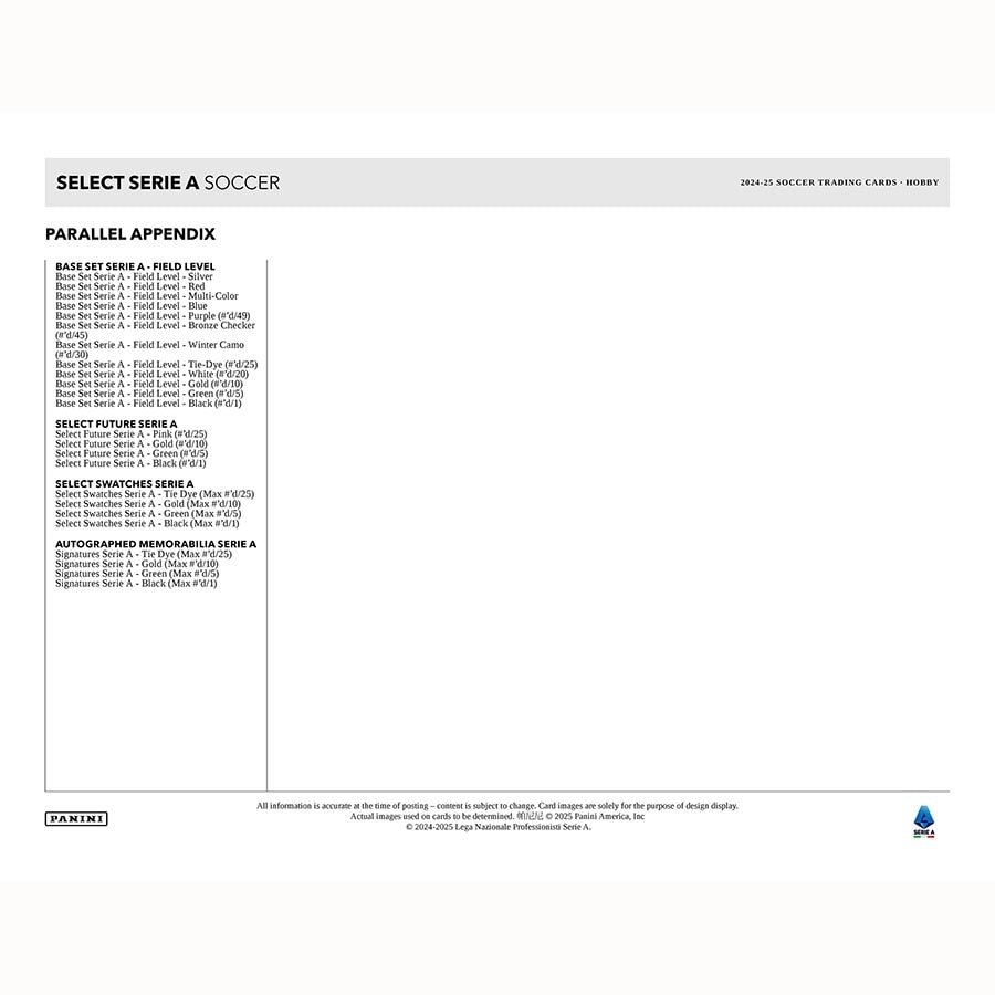 Panini Select Soccer bringt das edle Design, starke Autogramme und Parallels zurück - jetzt für die 2024-25 Saison der Serie A. Ideal für Breaks, Sammler und echte Calcio-Fans!