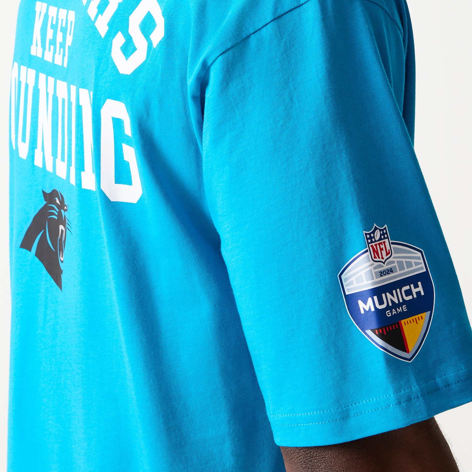 Das blaue Oversized-T-Shirt besticht durch seinen coolen, lässigen Look. Gefertigt aus hochwertiger Baumwolle, bietet es maximalen Tragekomfort und sorgt dafür, dass du in den Rängen oder bei jedem Fan-Event in München 2024 auffällst. Feiere die Panthers und die NFL live in München mit diesem speziellen Fanartikel, der speziell für dieses historische Spiel entworfen wurde. Mach dich bereit für ein unvergessliches Erlebnis und unterstütze dein Team in Style.