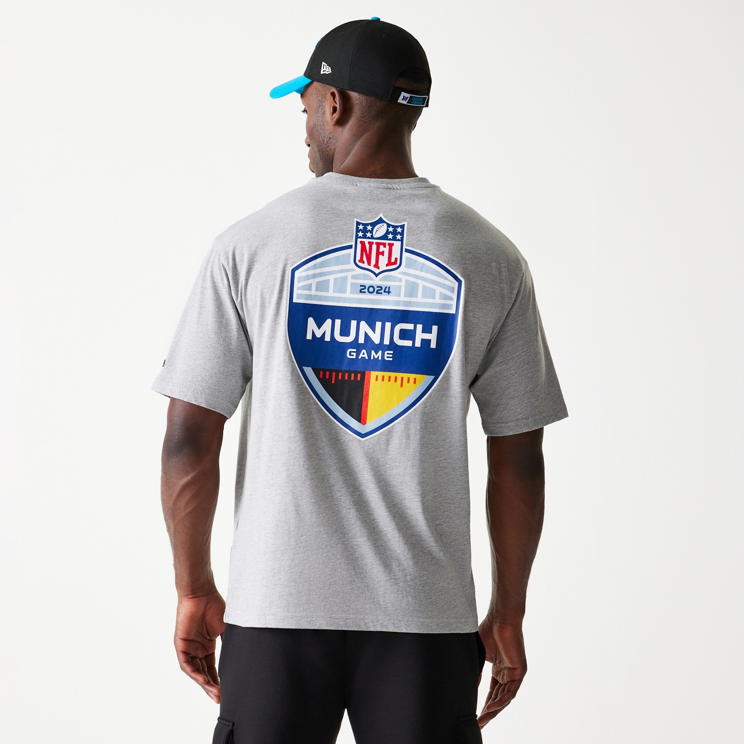 Das graue Oversized-T-Shirt besticht durch seinen coolen, lässigen Look. Gefertigt aus hochwertiger Baumwolle, bietet es maximalen Tragekomfort und sorgt dafür, dass du in den Rängen oder bei jedem Fan-Event in München 2024 auffällst. Feiere die Panthers und die NFL live in München mit diesem speziellen Fanartikel, der speziell für dieses historische Spiel entworfen wurde. Mach dich bereit für ein unvergessliches Erlebnis und unterstütze dein Team in Style.