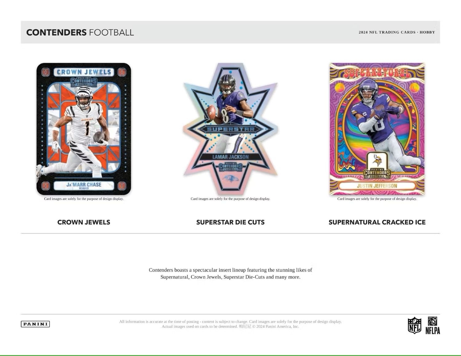 Inserts: Contenders boasts a spectacular insert lineup featuring the stunning likes of Supernatural, Crown Jewels, Superstar Die-Cuts and many more.