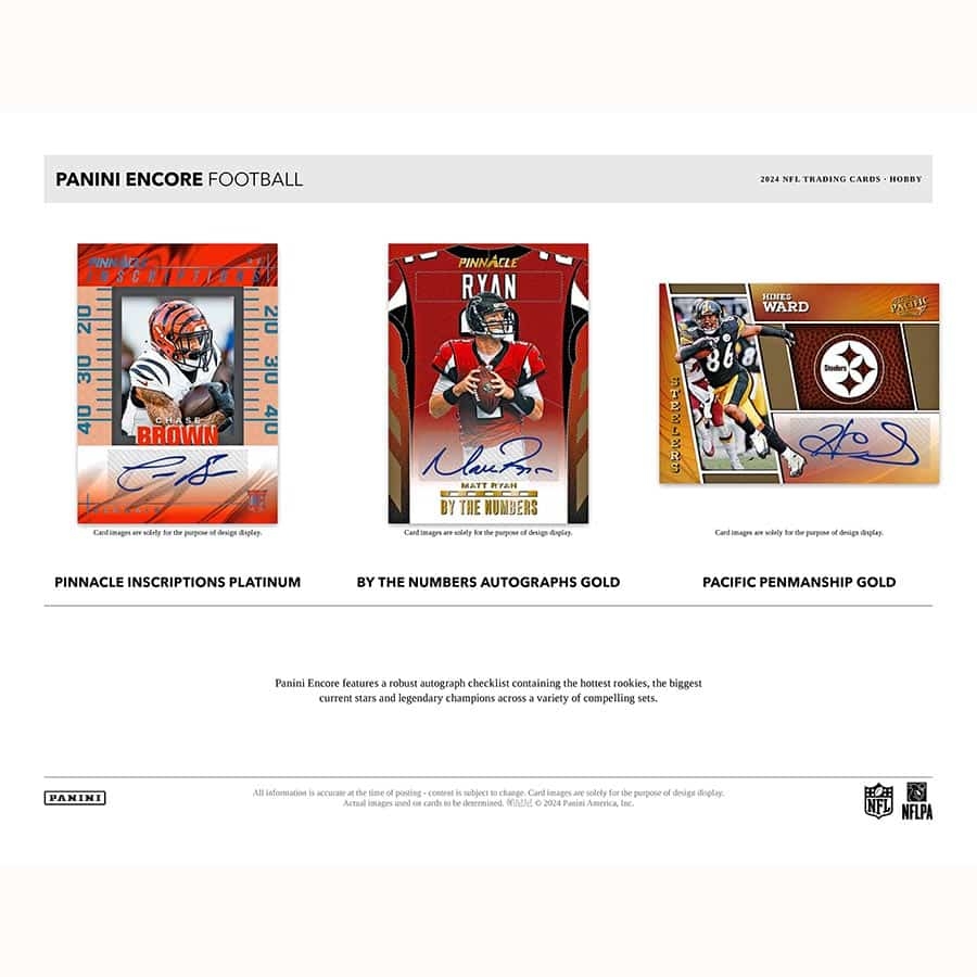Mit einem beeindruckenden Autograph-Set, das von den heißesten Rookies über aktuelle Superstars bis hin zu legendären Champions reicht, ist Panini Encore Football 2024 ein Must-Have für jeden Football-Fan!