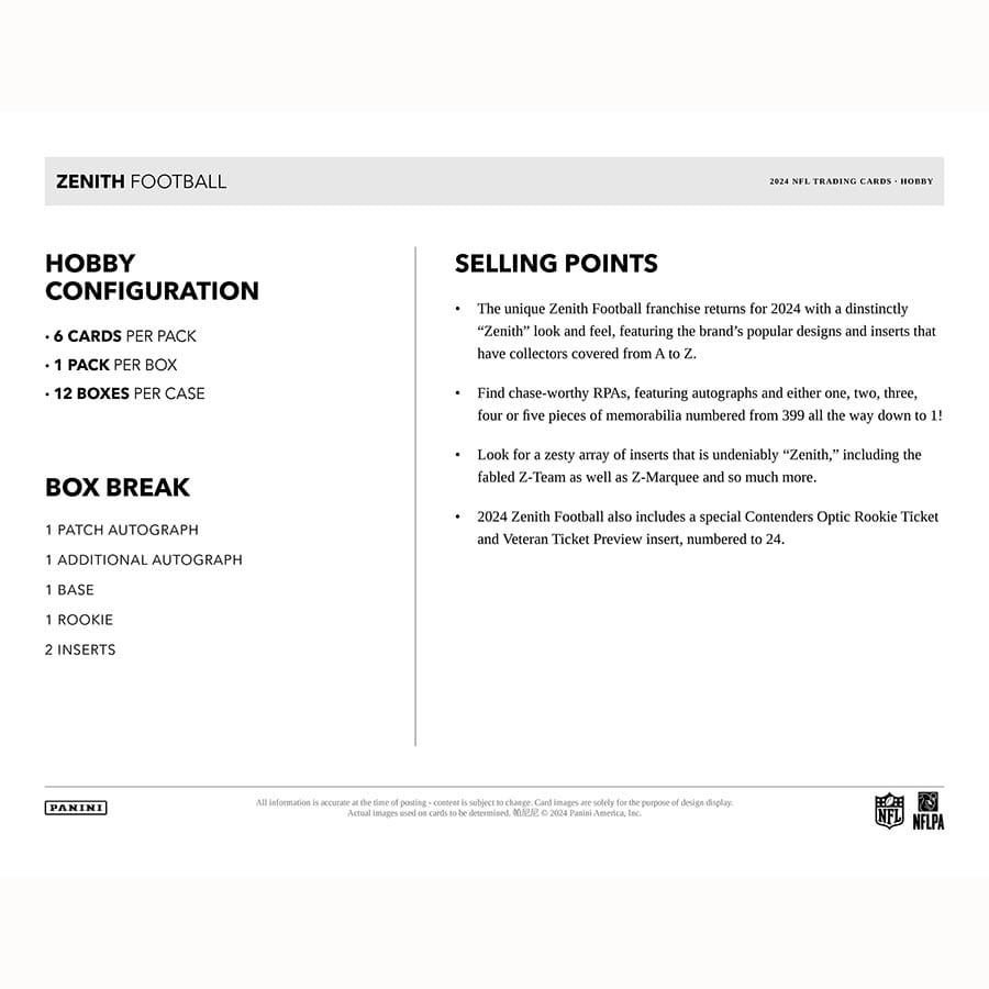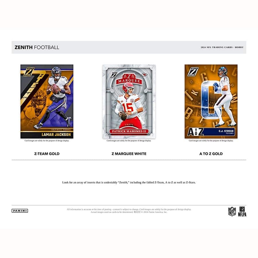 BASE: 2024 Zenith Football boasts a 200-card base set, including 100 of the biggest stars in the game as well as 100 of the top Rookies.