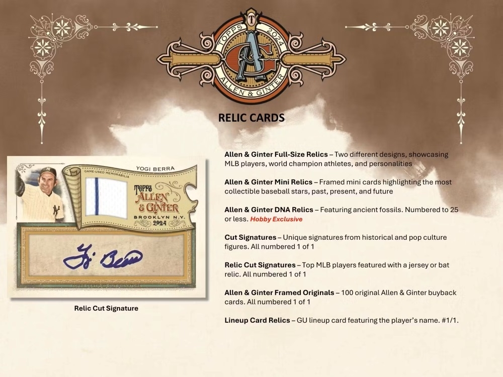 Allen & Ginter Mini Relics: Framed mini cards highlighting the most collectible baseball stars, past, present, and future