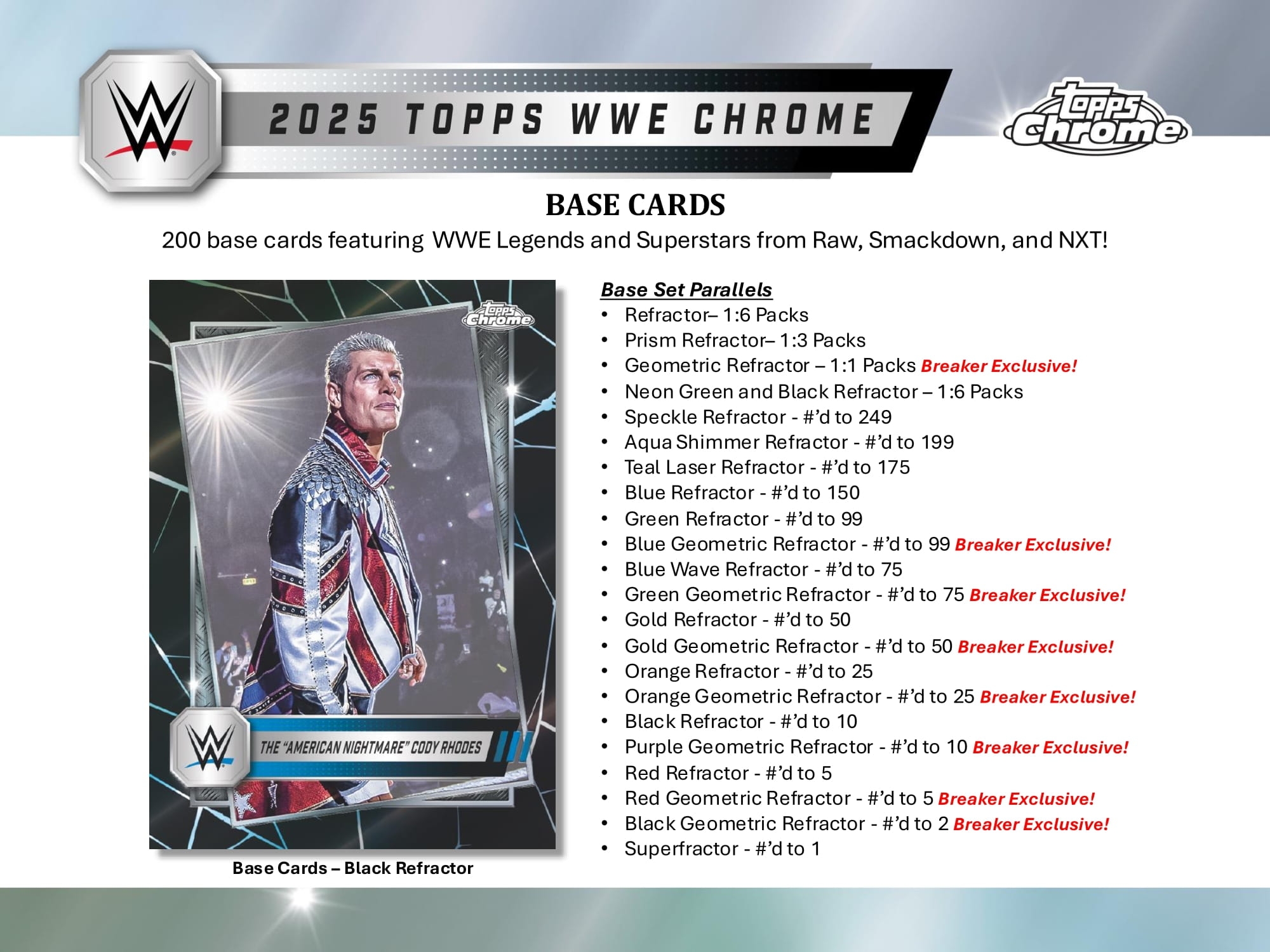 200 base cards featuring WWE Legends and Superstars from Raw, Smackdown, and NXT!