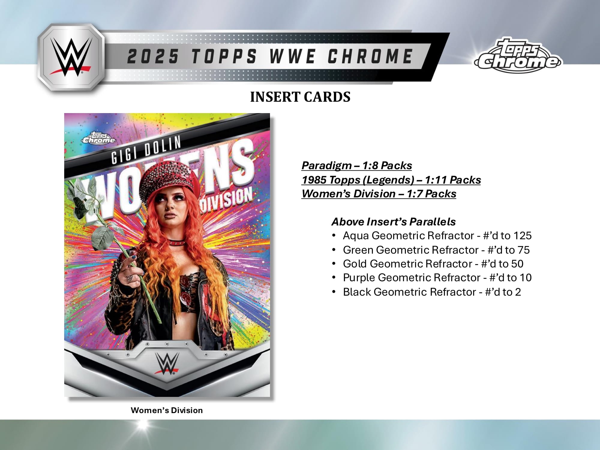 Mit Topps WWE Chrome 2025 kehrt eine der beliebtesten WWE-Kollektionen triumphal zurück! Perfekt für jeden Wrestling-Fan und Sammelkarten-Enthusiasten.