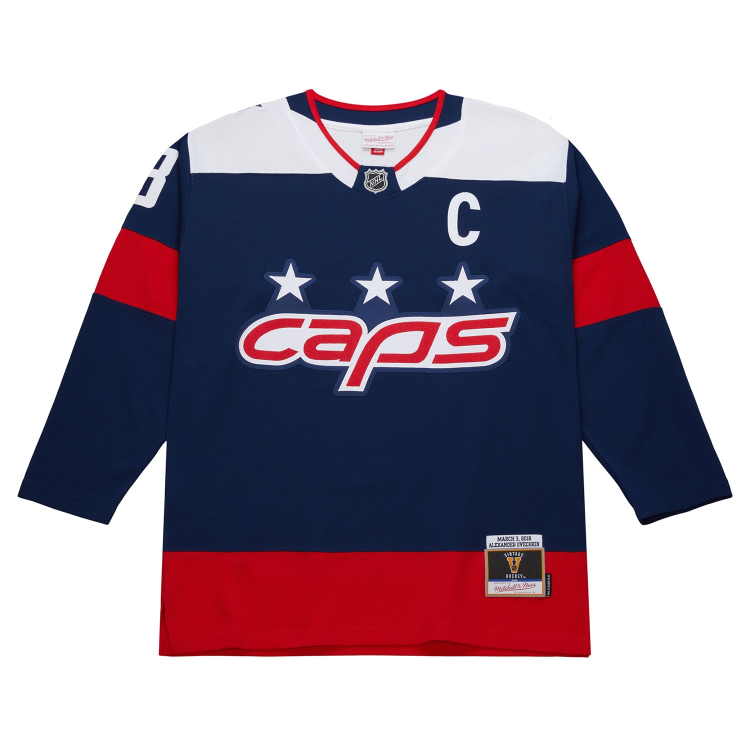 Mitchell & Ness NHL Herren Power Play Eishockey Trikot von Washington Capitals Superstar Alex Ovechkin im 2018 Stadium Series Design.
