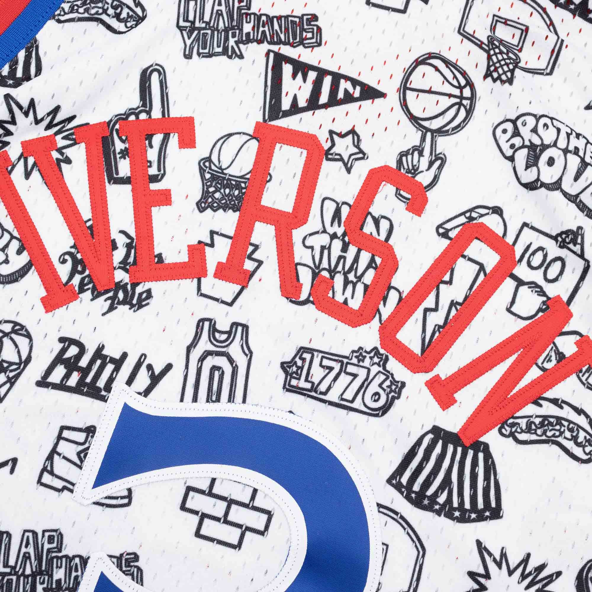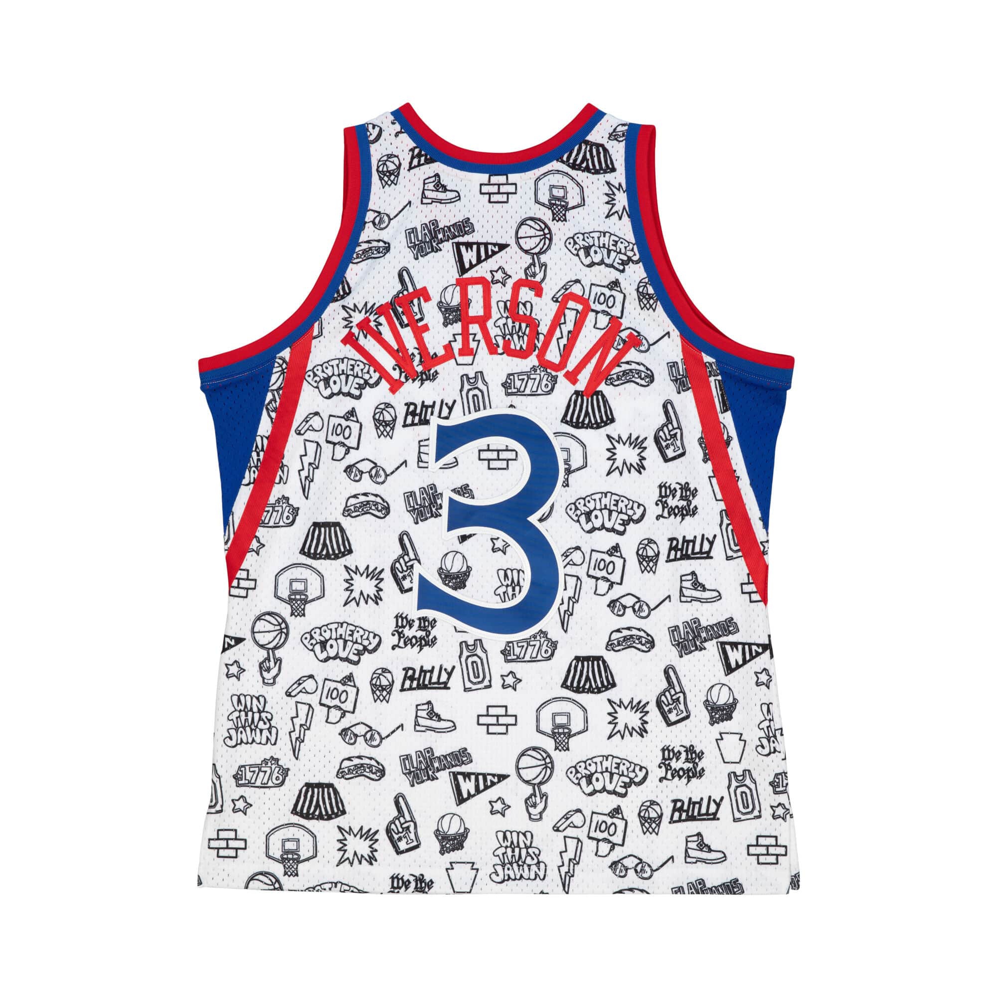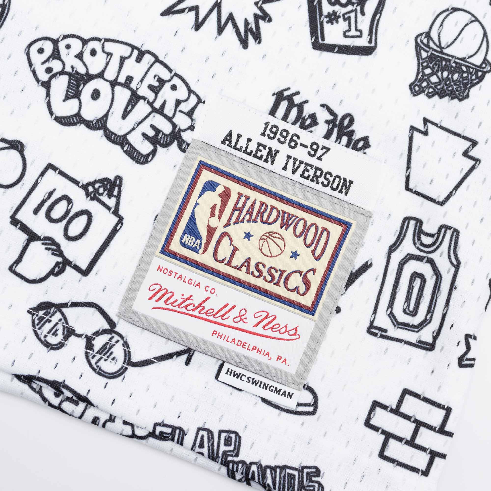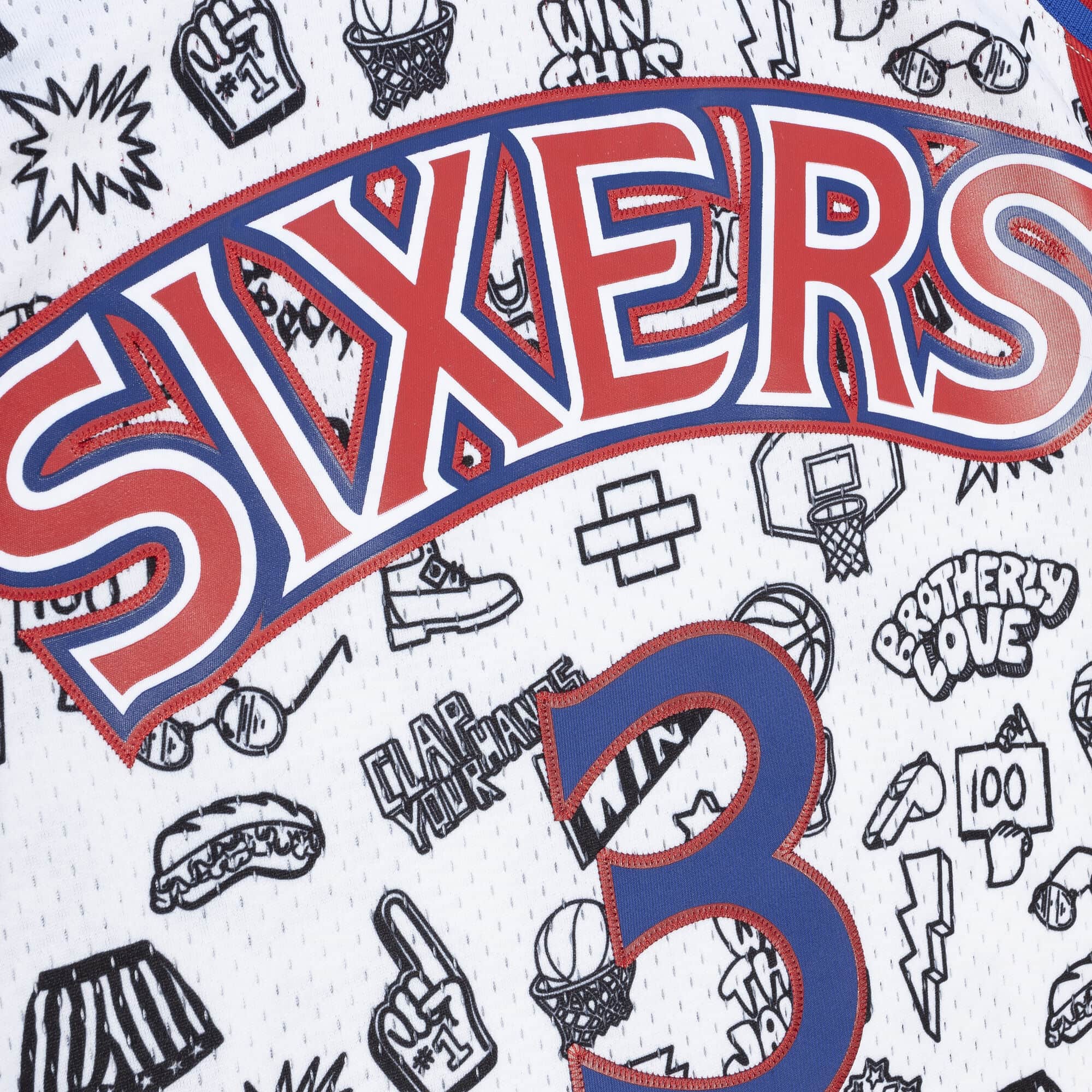 Mitchell & Ness NBA Herren Basketball Swingman Trikot von Philadelphia 76ers Legende Allen Iverson in der NBA Doodle Limited Edition.