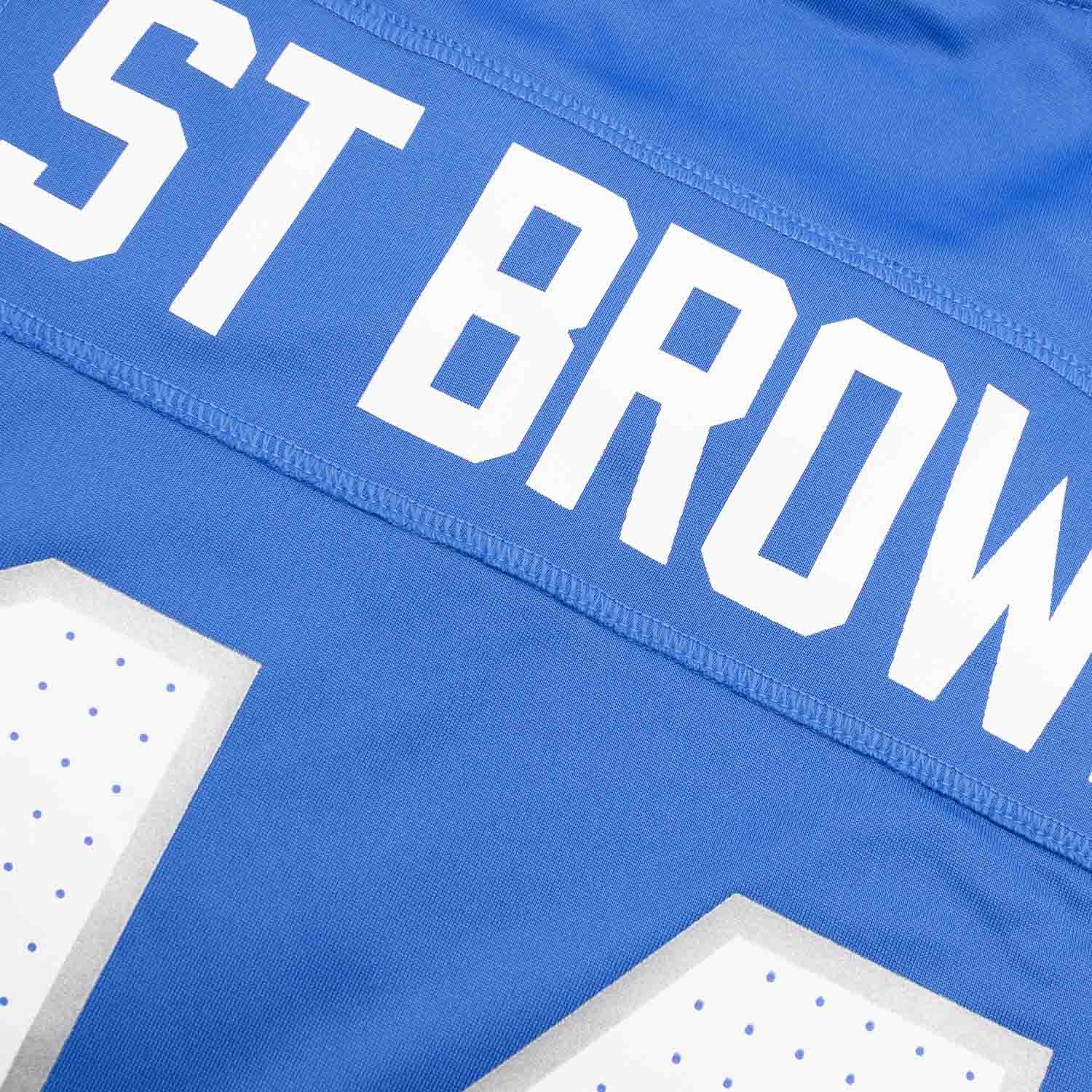 - Für wahre Lions-Fans: Dieses Amon-Ra St. Borwn #14 Trikot ist nicht nur ein Fanartikel - es ist deine direkte Verbindung zum Team. Es ist so gestaltet, dass es dem Trikot auf dem Spielfeld gleicht, einschließlich St. Browns Name und Nummer, damit du dich wie ein Teil des Geschehens fühlst.