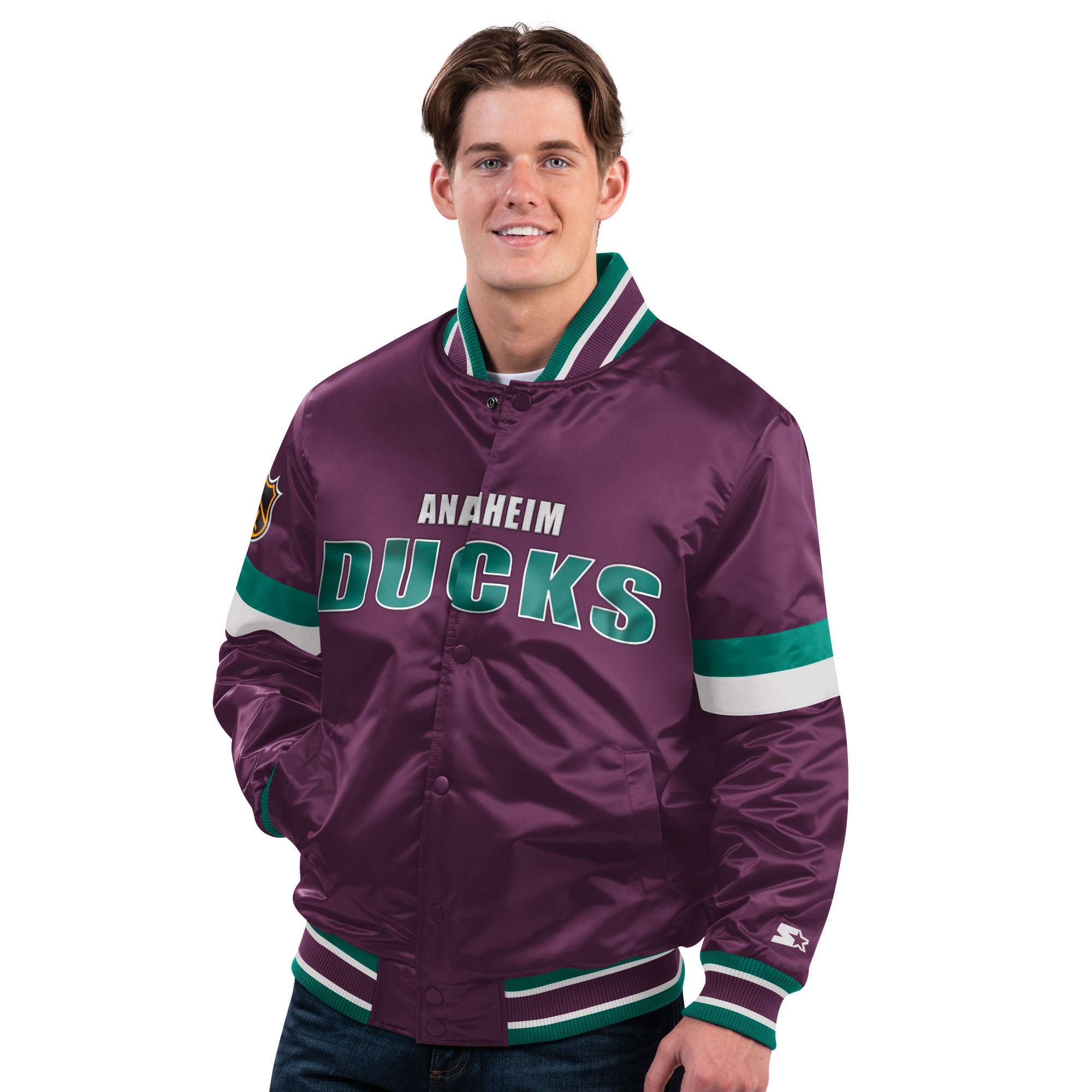 Starter NHL Herren Varsity Satin Jacke im klassischen Diveplay Style deiner Anaheim Ducks.