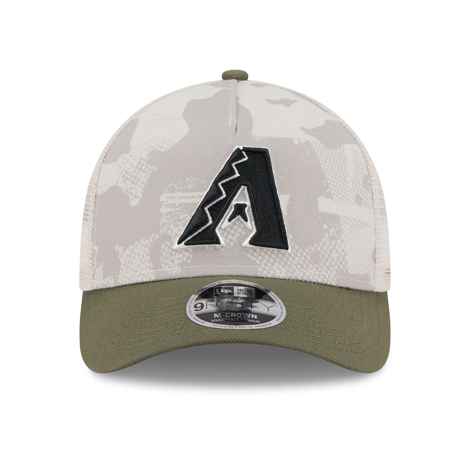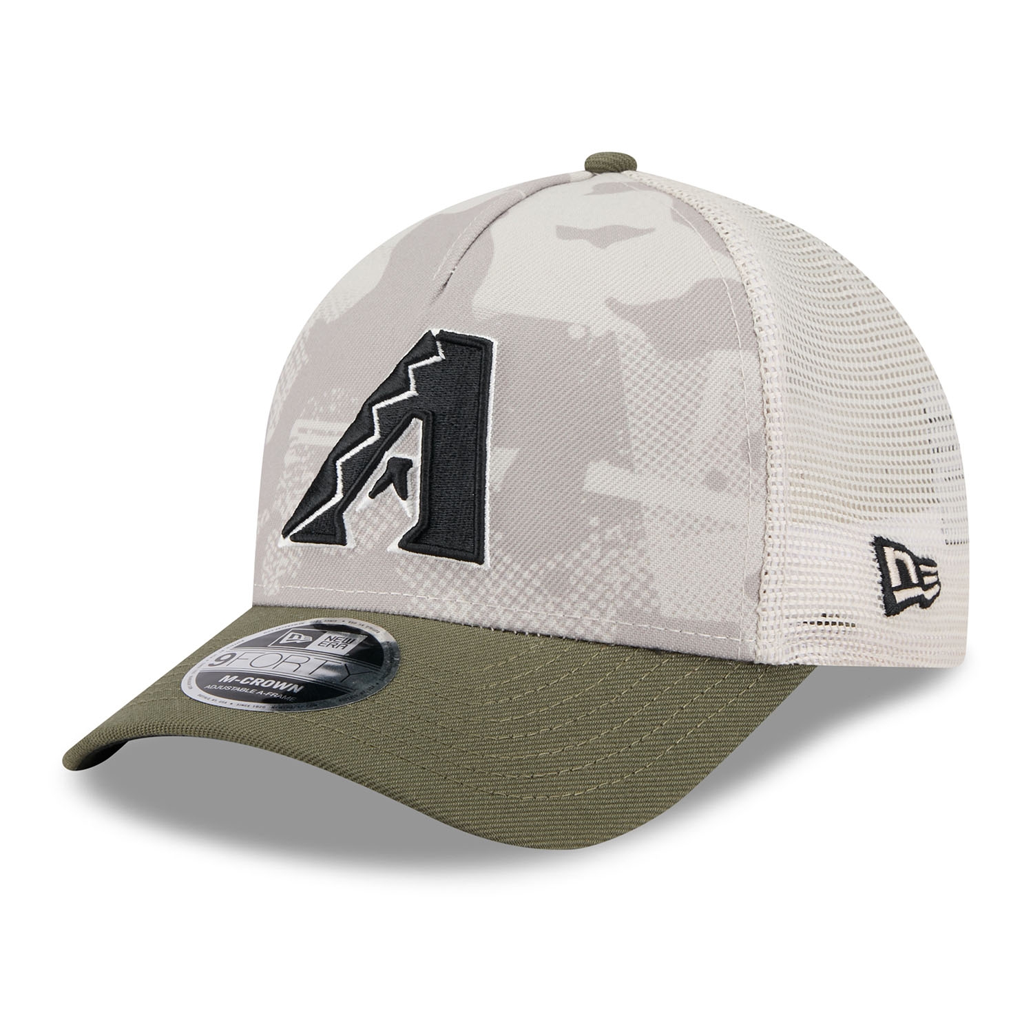 New Era Baseball Snapback Trucker Cap von deinen Arizona Diamondbacks im 9FORTY M-Crown A-Frame Style aus der 2025 MLB Armed Forces Day Kampagne.