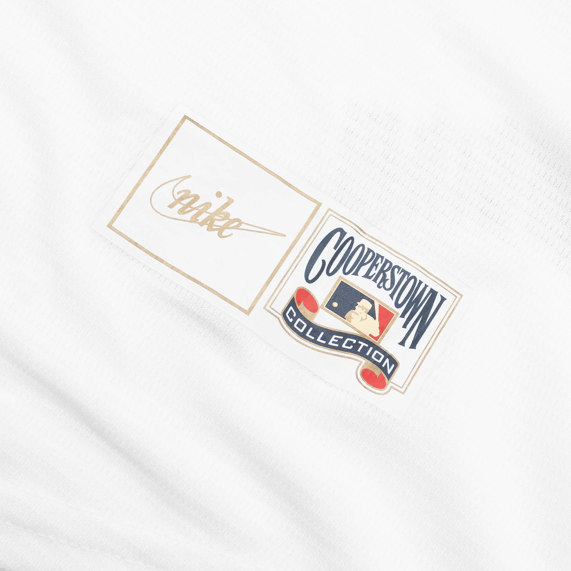 Das Baseball Trikot überzeugt mit dem Retro Style und lässt sich mit dem atmungsaktiven Nike-Material trotzdem angenehm tragen. Abgerundet wird das Design durch das Retro Nike Swoosh Logo direkt auf der rechten Brustseite und dem Cooperstown Collection Label am Hemdsaum. Das Hersteller-Label im Nacken ist ebenfalls gedruckt, um einen optimalen Tragekomfort zu gewährleisten.