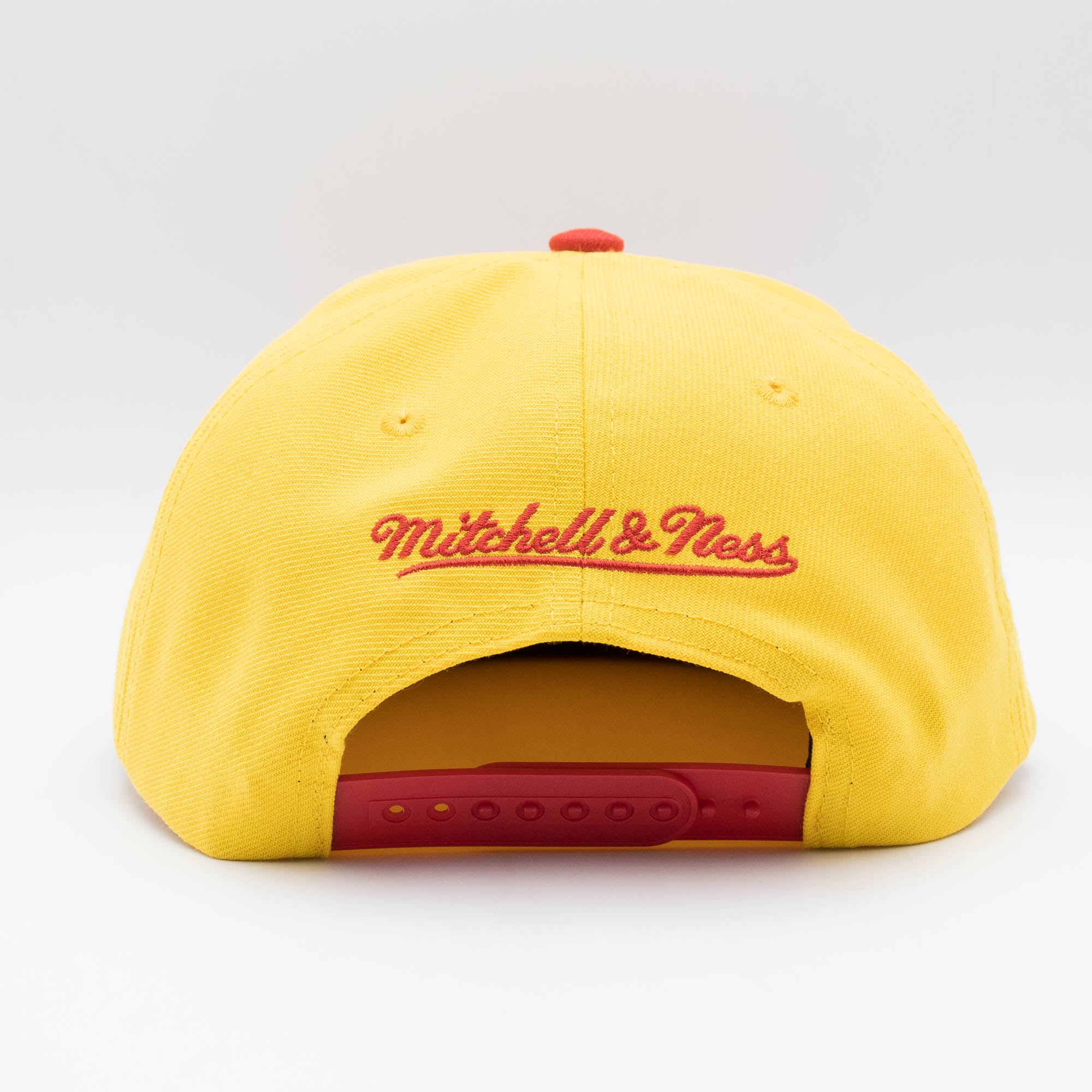 Klassische Mitchell & Ness Original Fit Snapback mit schlanken, flachen Schirm und hoher, fester Krone. Für mehr Atmungsaktivität sorgen die gestickten Ösen; das innenseitige Schweißband erhöht den Tragekomfort. Den flachen Capschirm kannst du nach Belieben in die gewünschte Form biegen.