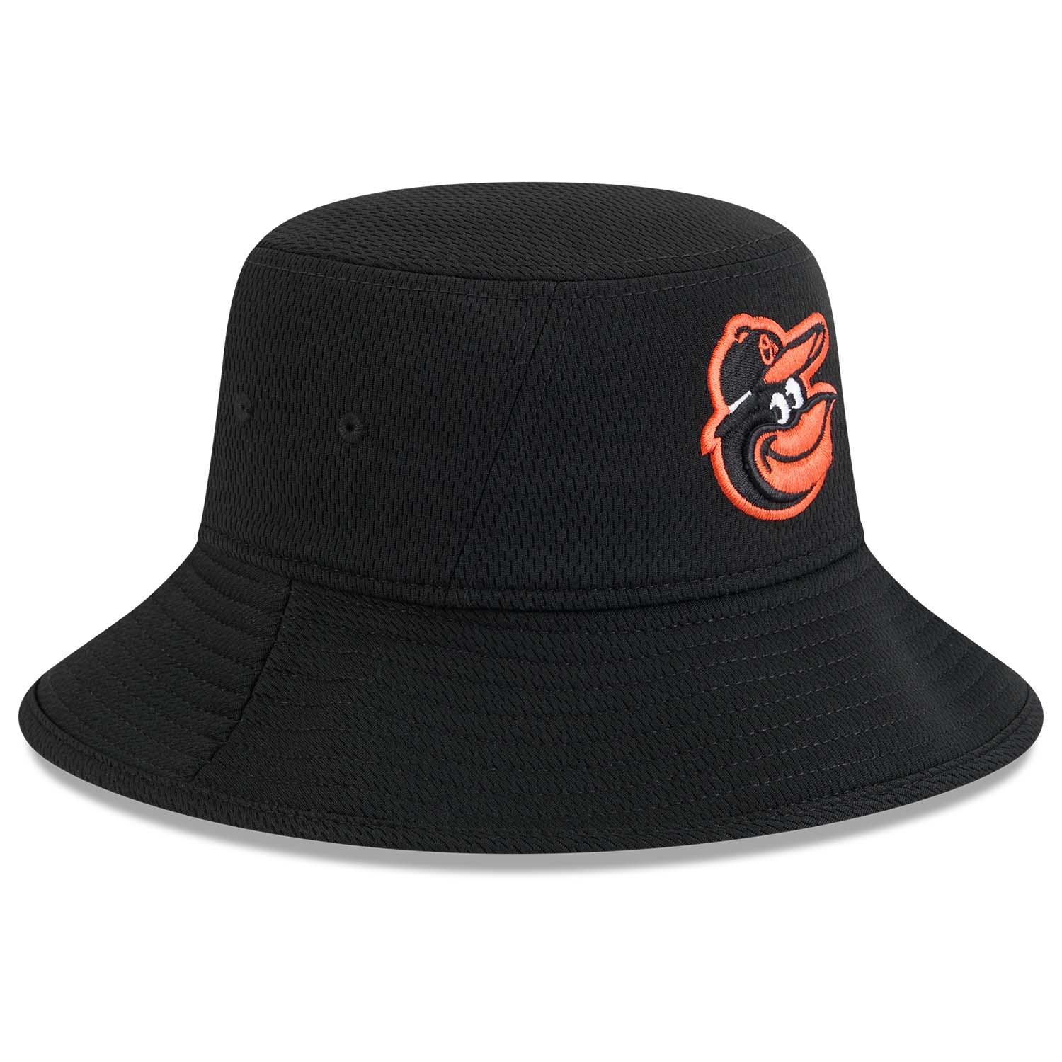 New Era Baseball Bucket Hut von deinen Baltimore Orioles im Stretch Style aus der offiziellen 2025 MLB Spring Training Kollektion.