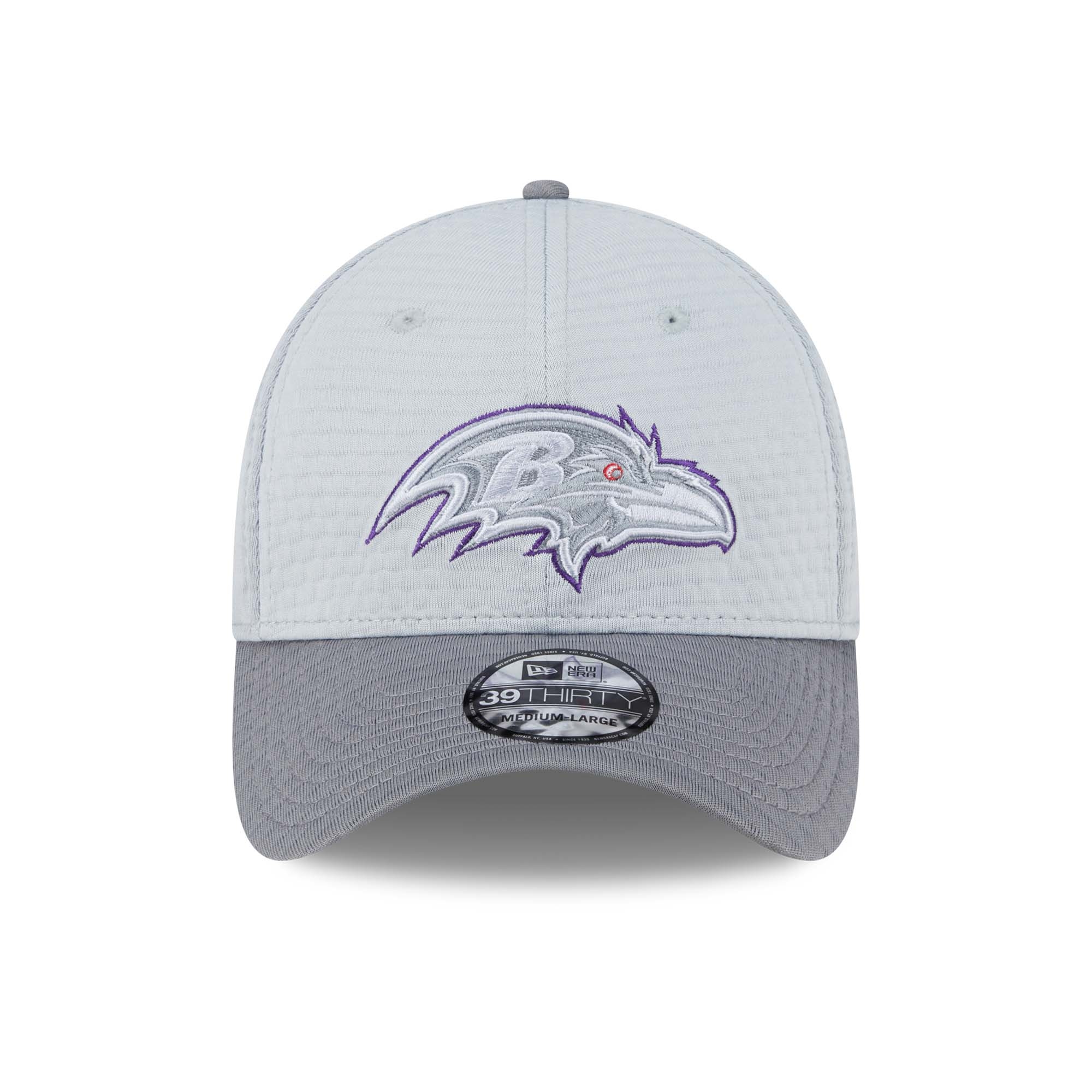 New Era American Football Cap deiner Baltimore Ravens im Stretch-Fit 39THIRTY Style aus der offiziellen 2024 NFL Training Camp Kollektion.