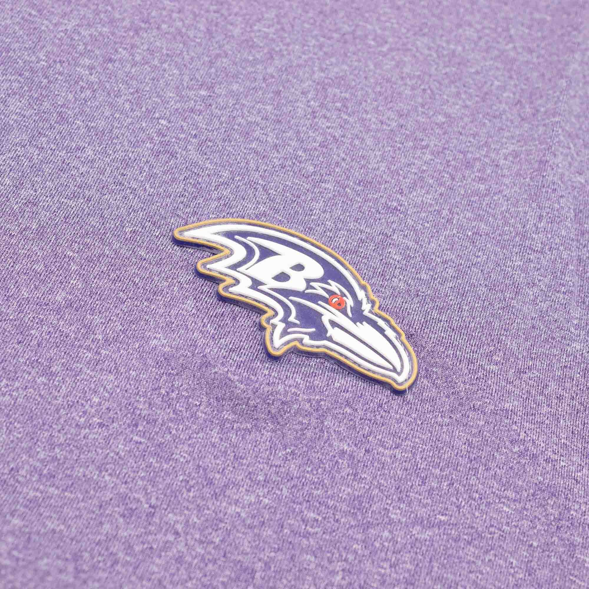 - Teamstolz: Auf der linken Brust ist das ikonische Baltimore Ravens Teamlogo als hochwertiges Silikon-Patch aufgenäht, während der Teamschriftzug stilvoll am vorderen Saum aufgedruckt ist.