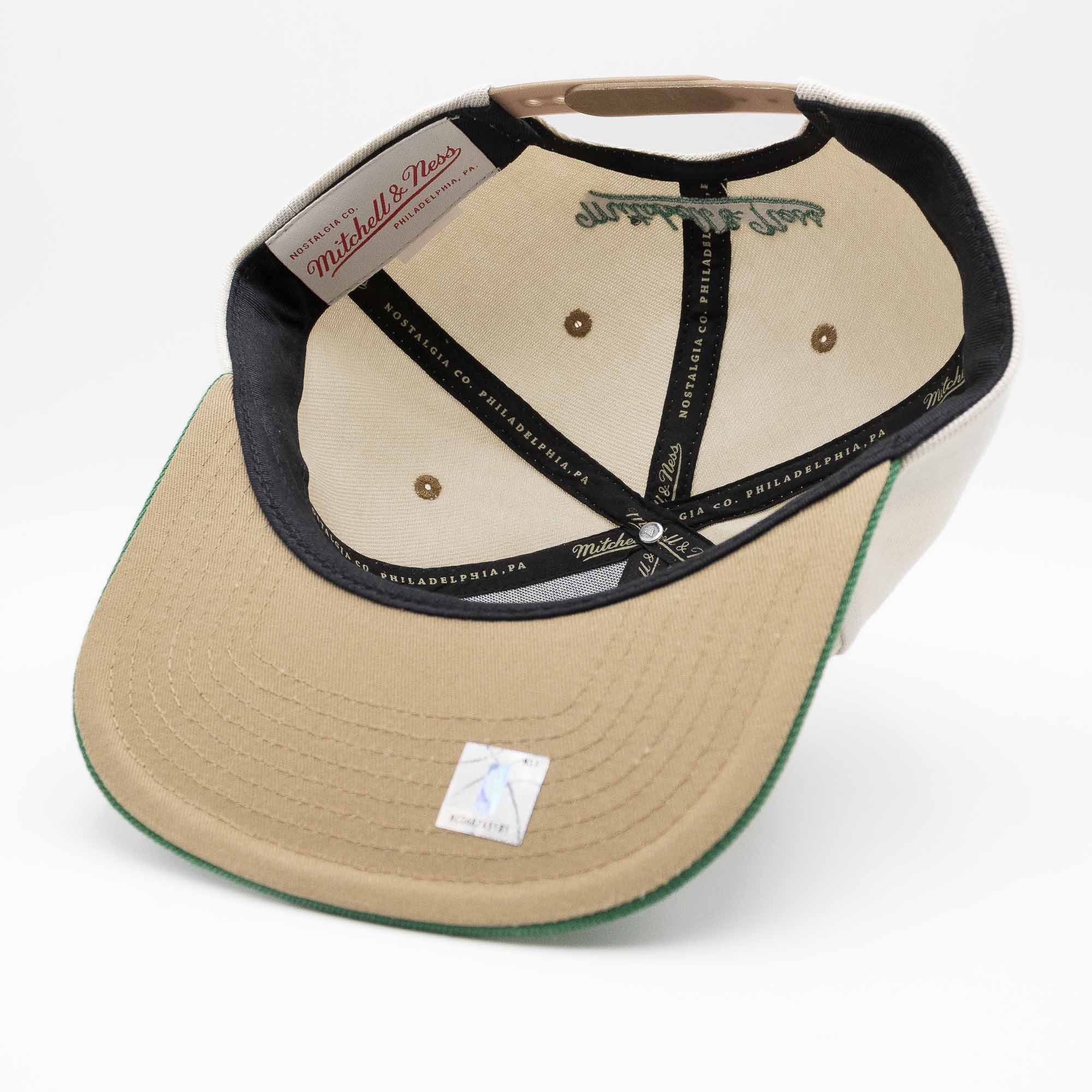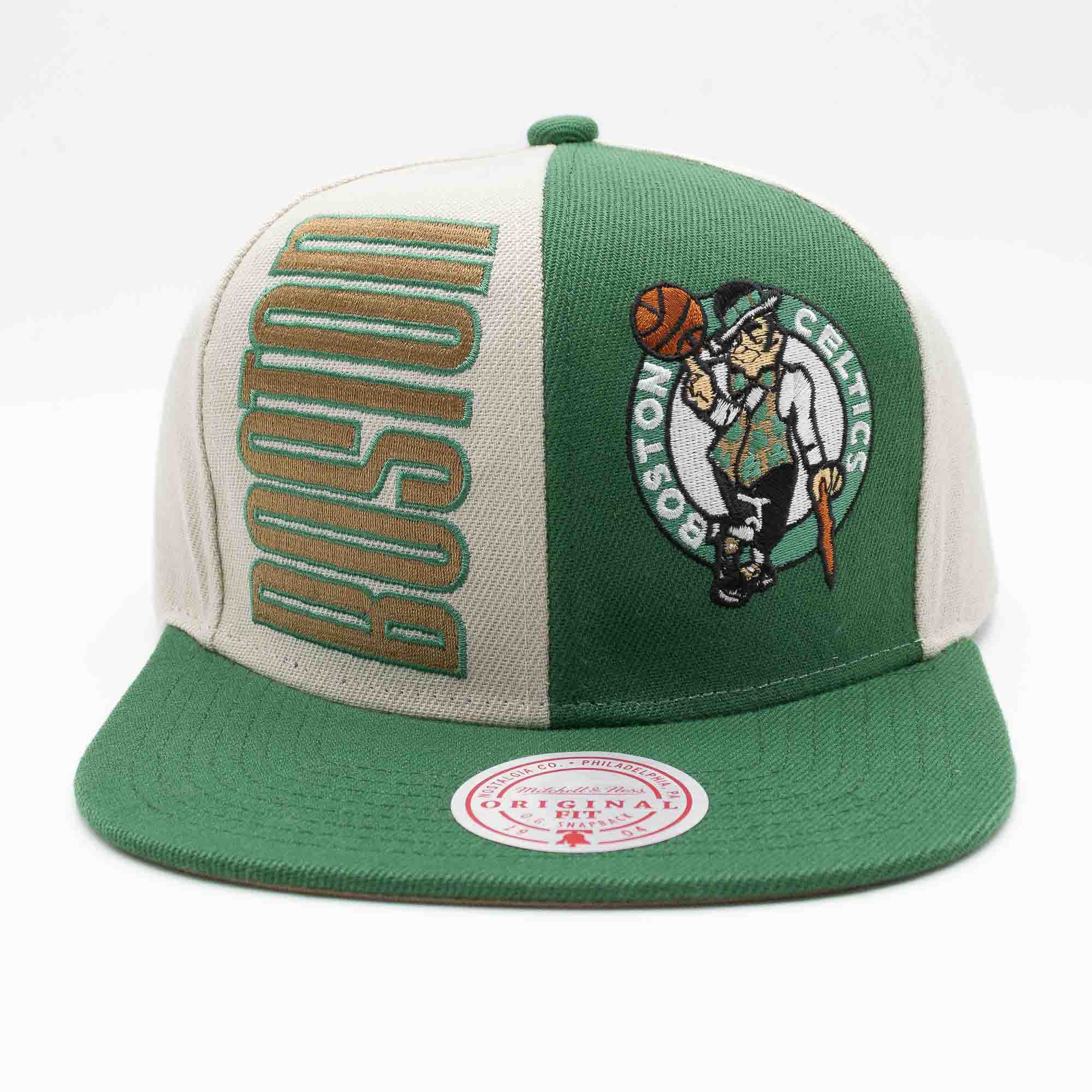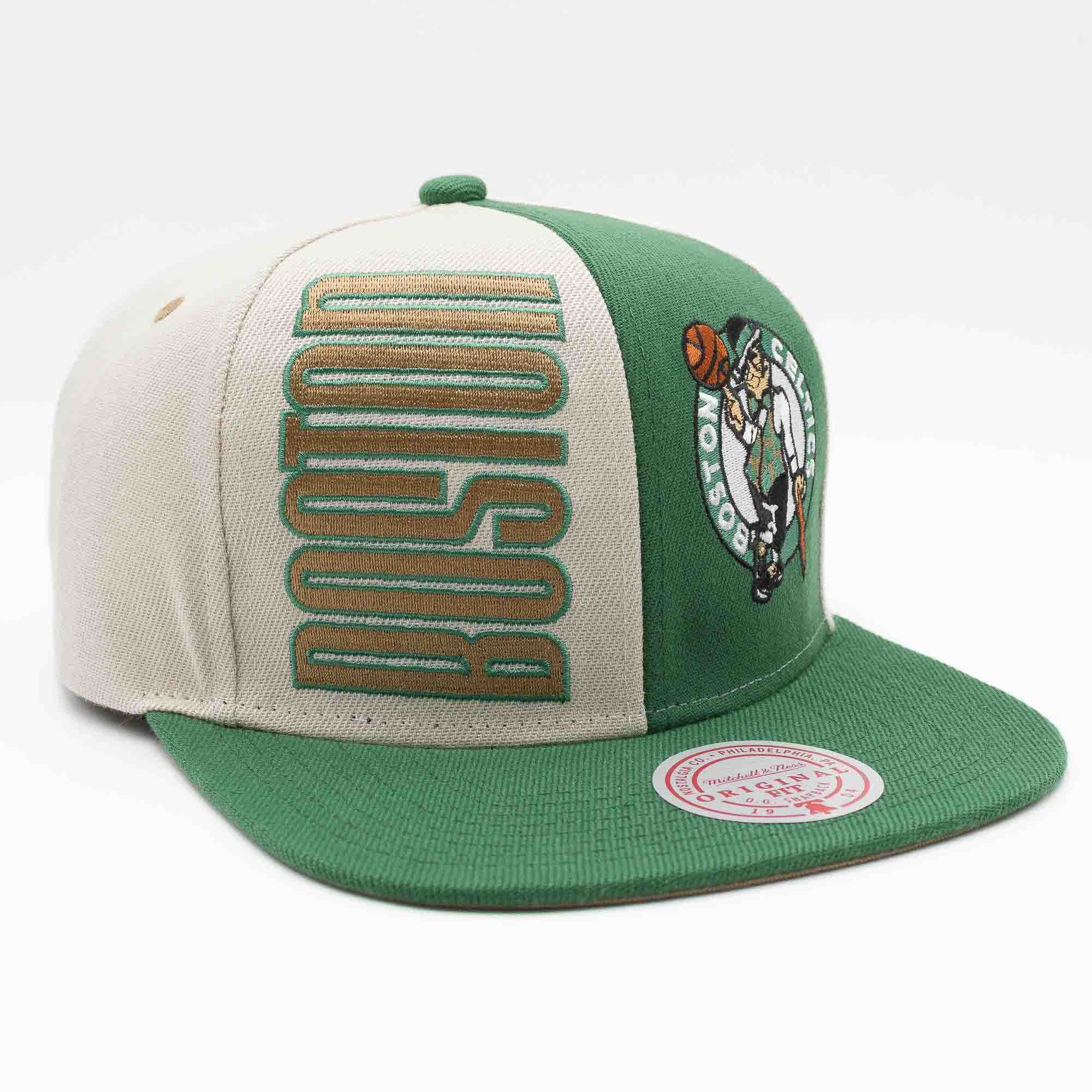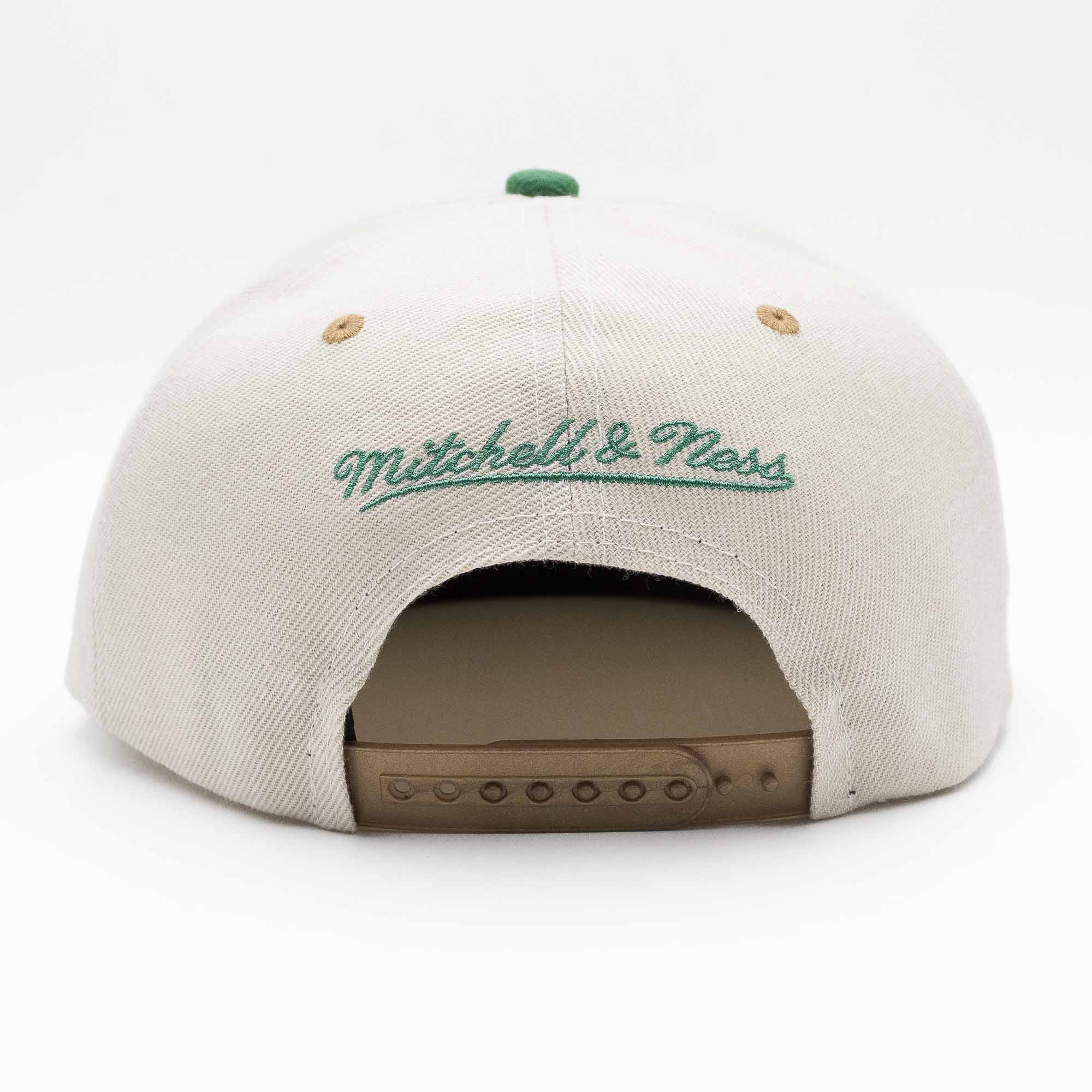 Mitchell & Ness NBA Original Fit Basketball Snapback Cap von den Boston Celtics im zweifarbigen Off White Pop Panel Design.