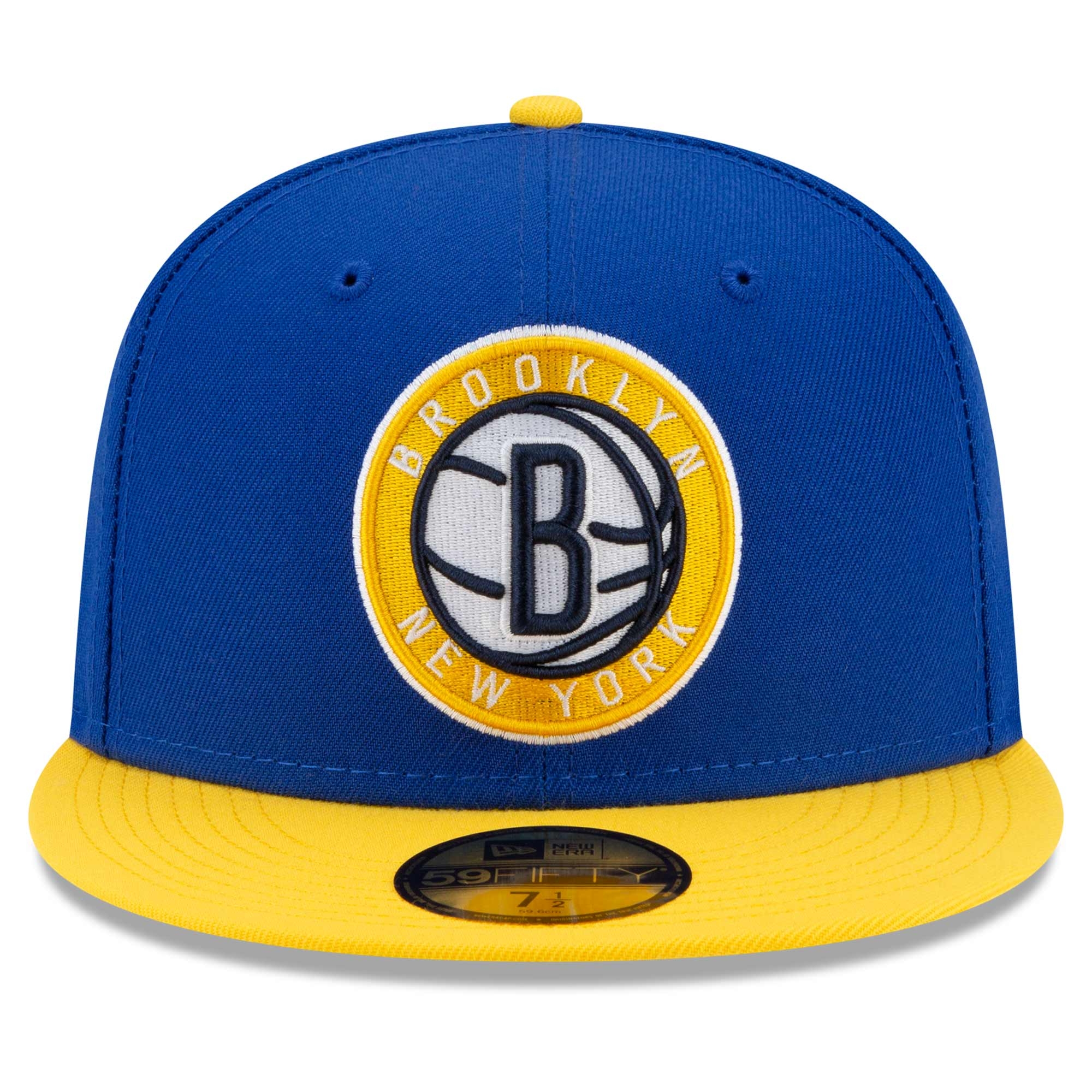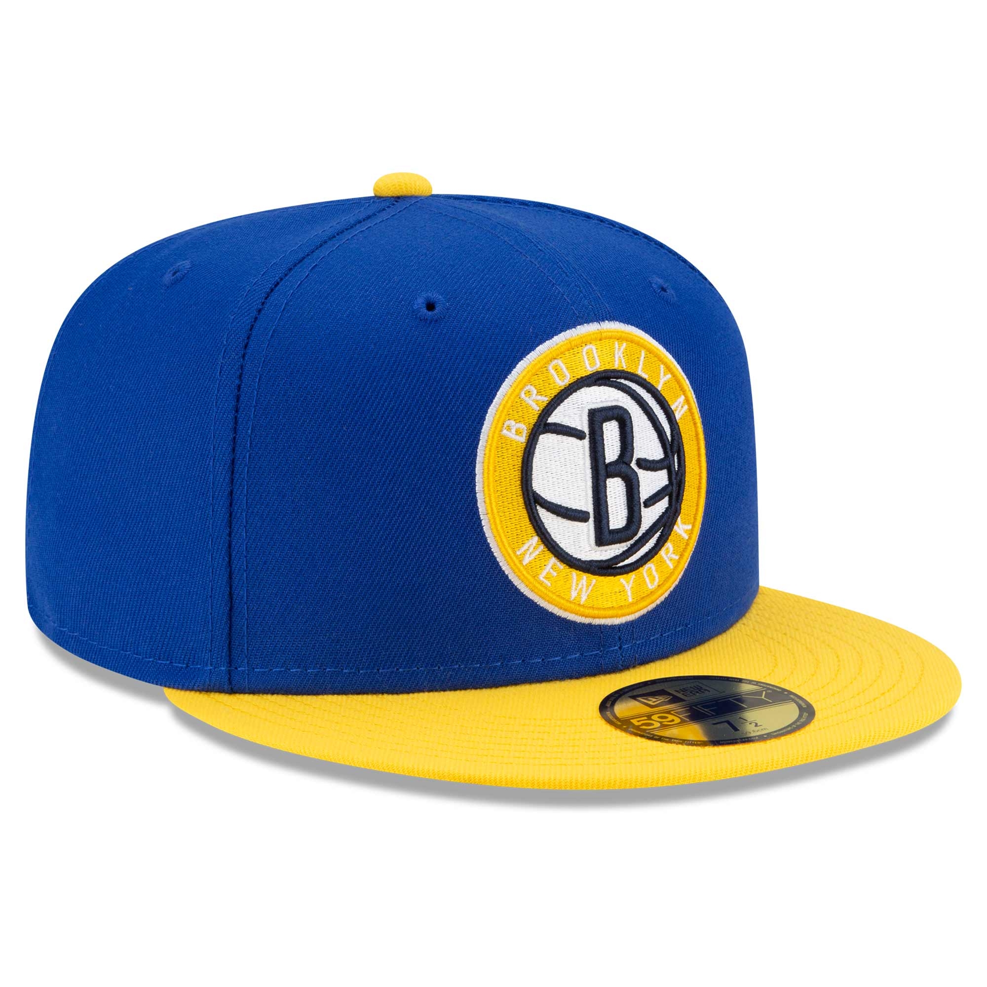 New Era Basketball 59FIFTY Fitted Cap von deinen Brooklyn Nets aus der 2021 NBA Flash Kollektion im Blau-Gelben Colorpack Design.