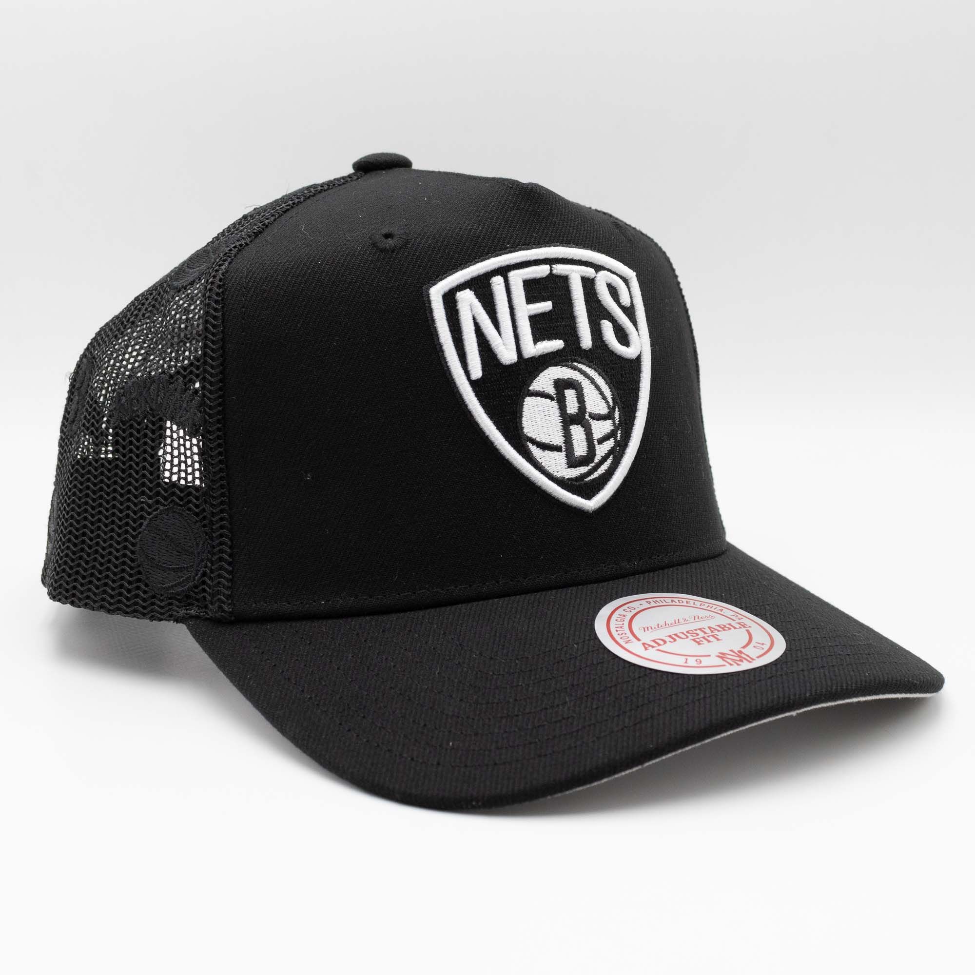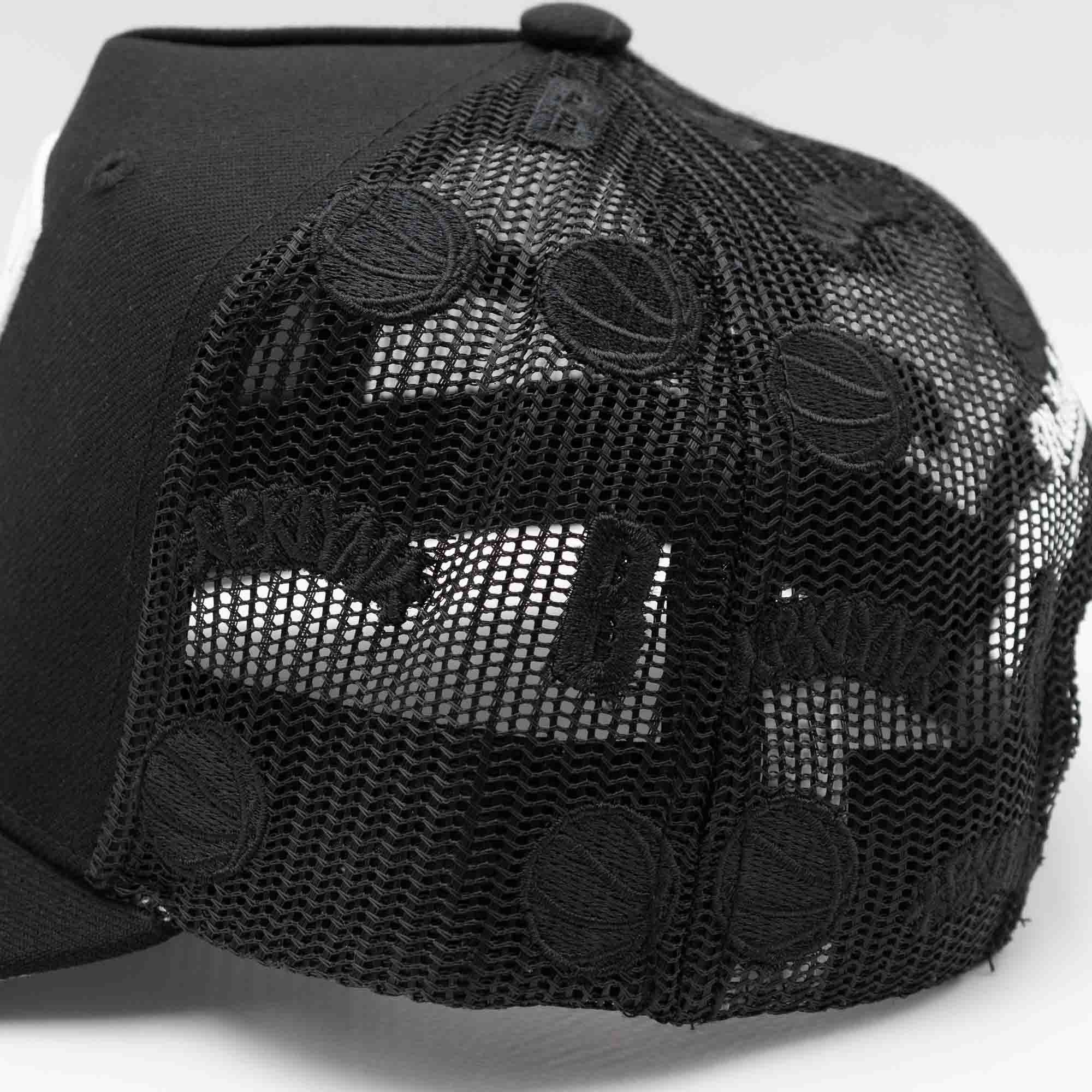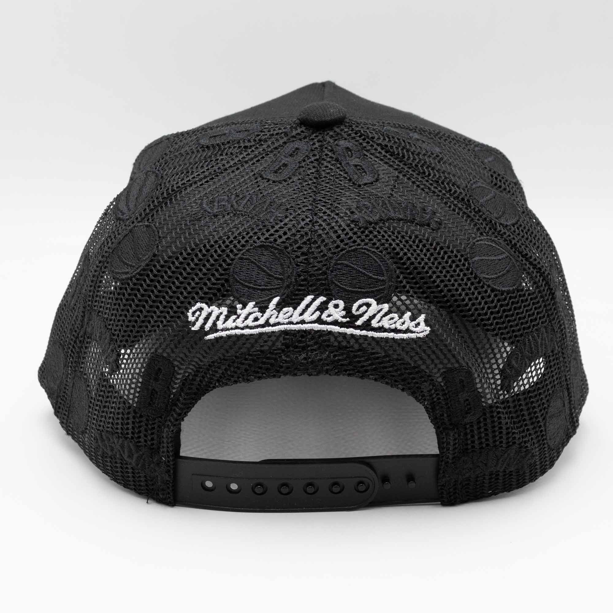 Mitchell & Ness NBA Adjustable Fit Trucker Cap von deinen Brooklyn Nets im schwarzen Monogram Style.