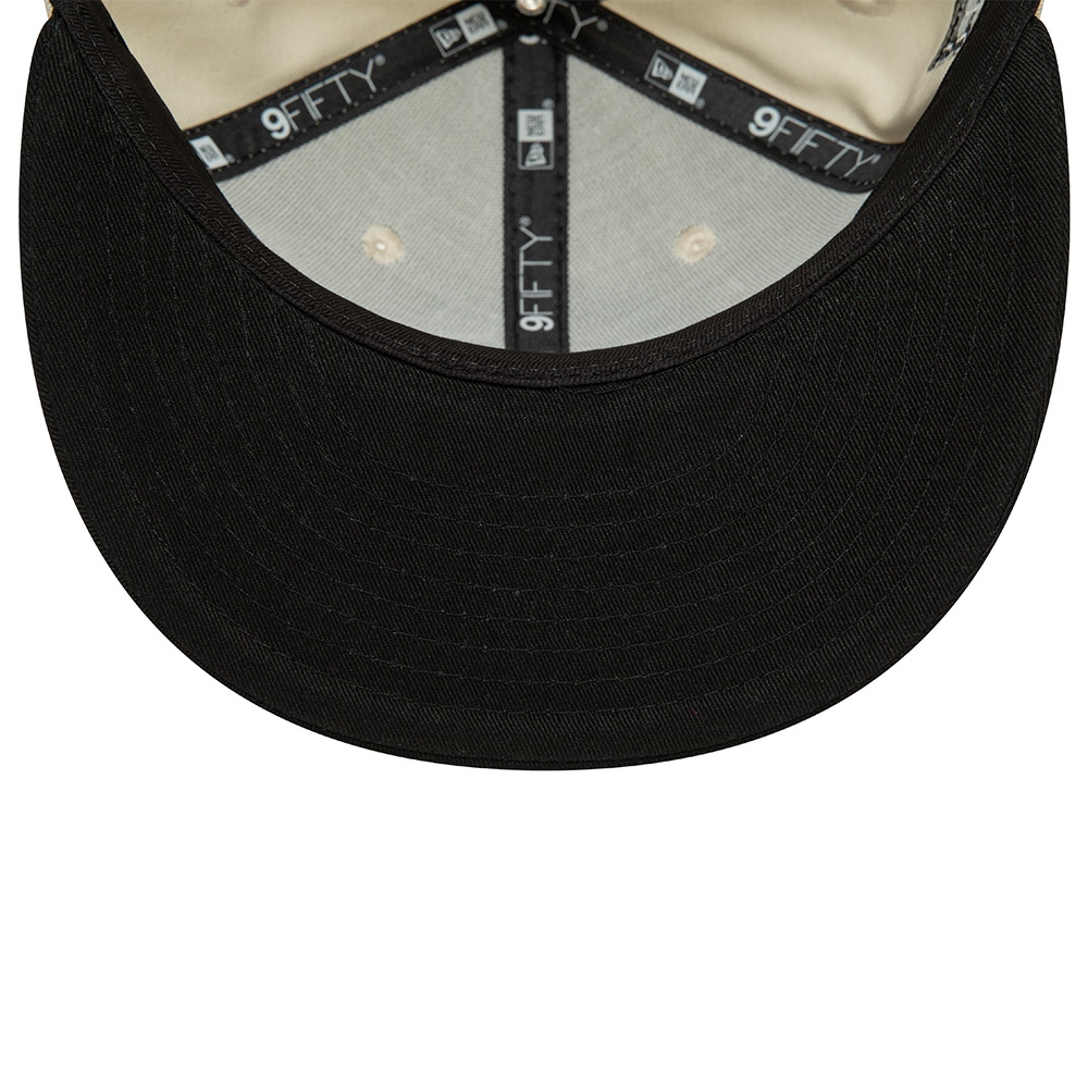Klassische 9FIFTY Snapback Capform mit großem, flachem Schirm und hoher, fester Krone. Wie immer ist auf der linken Seite das New Era Logo aufgestickt. Für mehr Atmungsaktivität sorgen die gestickten Ösen. Den flachen Capschirm kannst Du nach Belieben in die gewünschte Form biegen.