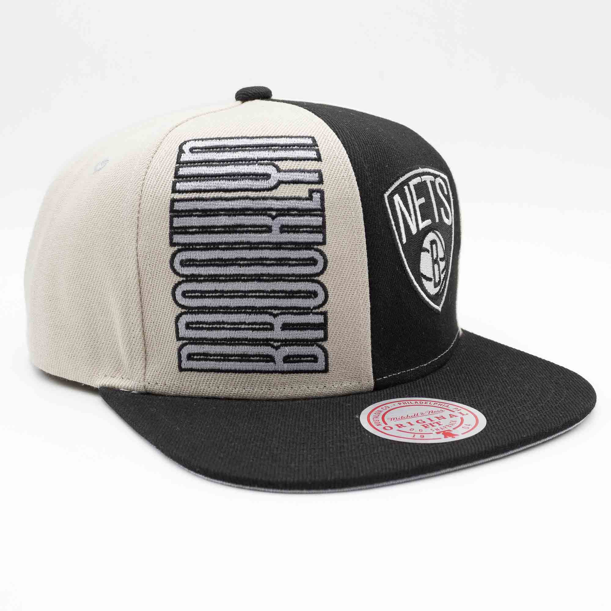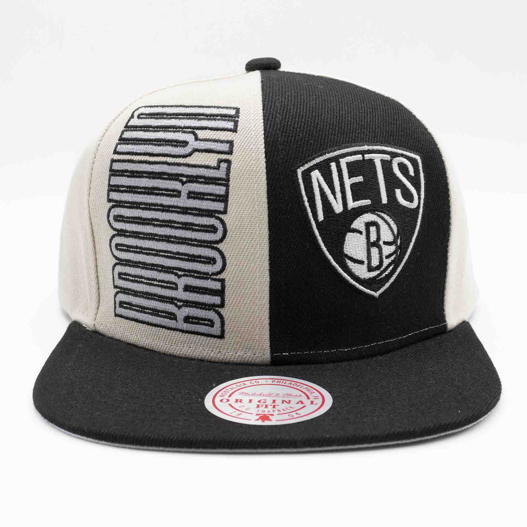 Mitchell & Ness NBA Original Fit Basketball Snapback Cap von den Brooklyn Nets im zweifarbigen Off White Pop Panel Design.