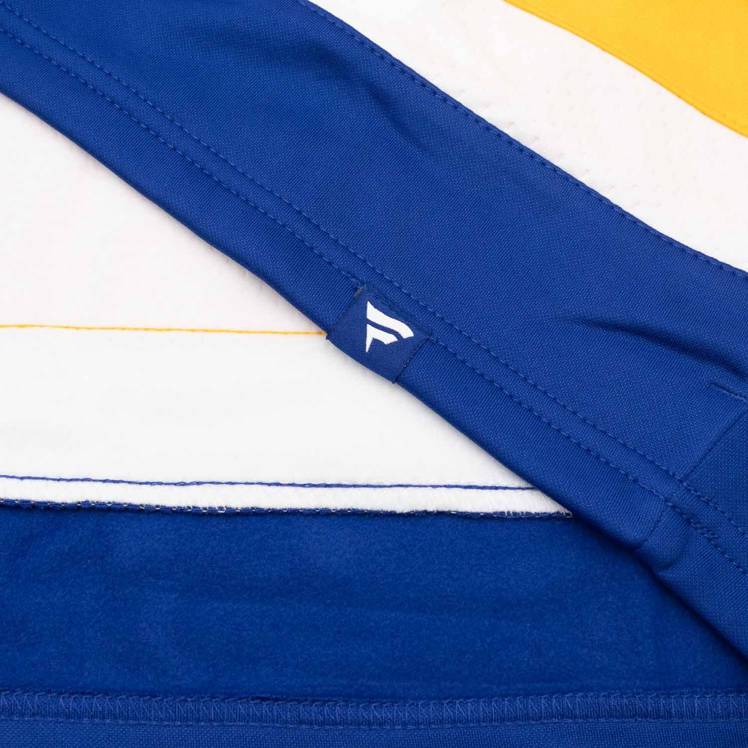 - Aufgenähte Streifen: Authentische, aufgenähte Streifen an Ärmeln und Bund im klassischen NHL-Jersey-Look.