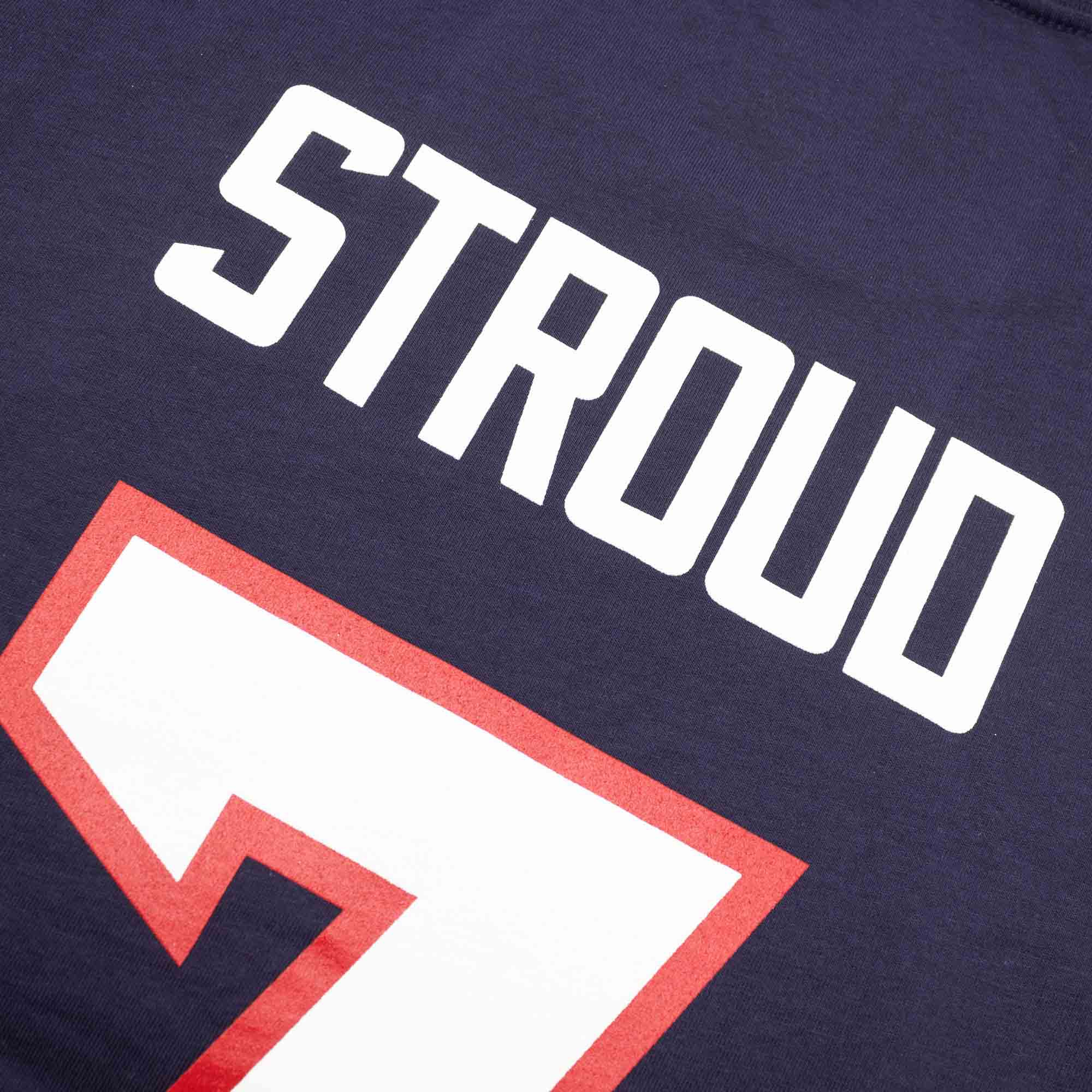 Houston Spielershirt mit aufgedruckten Namen und Nummer von deinem Texans-Lieblingsspieler: CJ Stroud! Das Player T-Shirt ist die modische und auch günstigere Alternative zum originalen NFL-Trikot. Vorder- und Rückseite zeigen die Spielernummer, die Rückseite zusätzlich den Spielernamen.