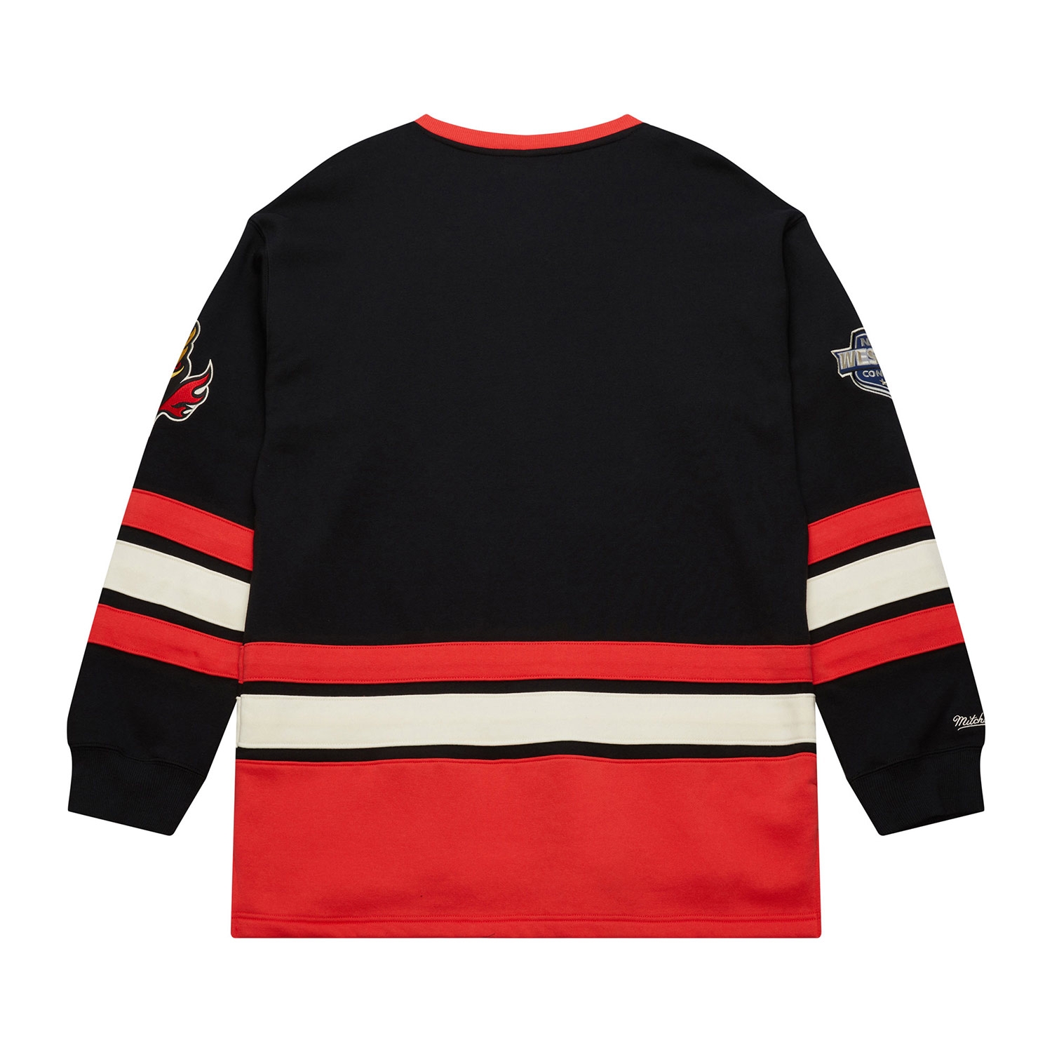 Mitchell & Ness NHL Herren Lace-Up Crew Pullover von deinen Calgary Flames im Heritage Jersey Style.
