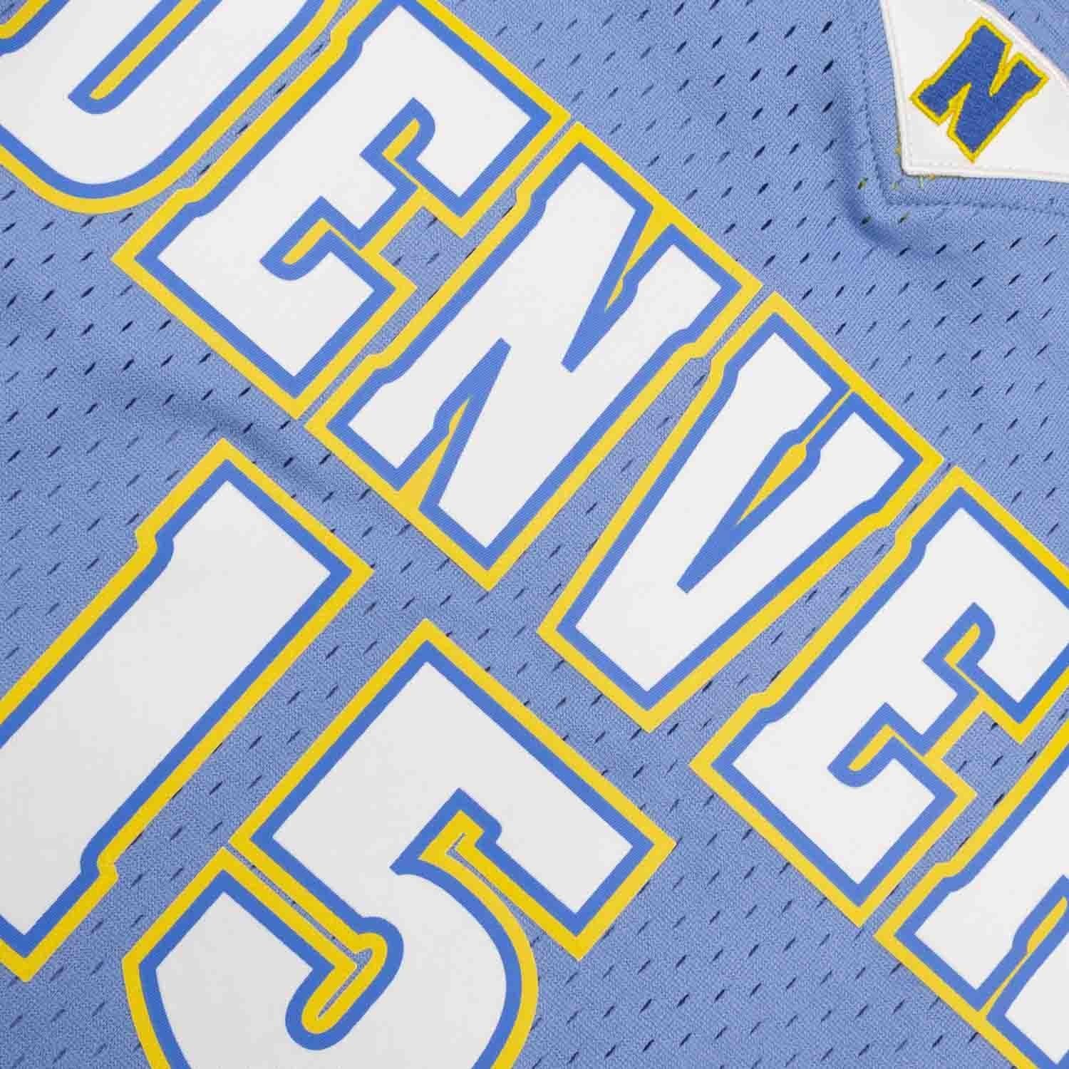 Klassisches Swingman NBA-Trikot im Design der Denver Nuggets aus der Saison 2003-04. Das Trikotdesign entspricht den originalen Trikots der NBA-Profis aus dieser Ära. Alle Logos, Buchstaben und Zahlen sind als hochwertig bedruckter Webepatch im Thermodruckverfahren aufgebracht. Das Mitchell & Ness Hardwood Classics Label am Saum ist aufgenäht. Die Mitchell & Ness NBA Trikots aus der Swingman Collection sind ein Must-Have für jeden Basketball Fan und eine Erinnerung an die besten Spieler und Legenden dieses Sports wie Carmelo "Melo" Anthony.
