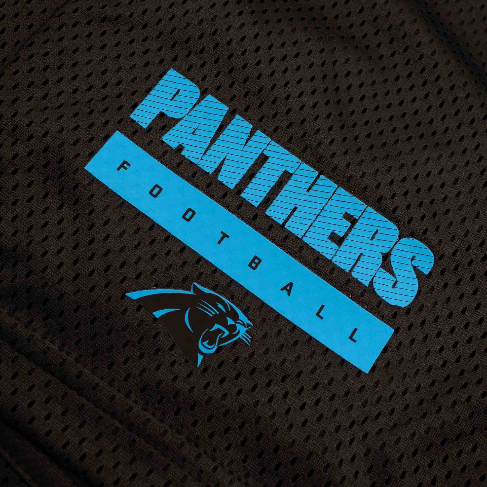 Nike Herren American Football Dri-FIT Mesh Shorts von deinen Carolina Panthers im offiziellen 2024 NFL On-Field Sideline Design.