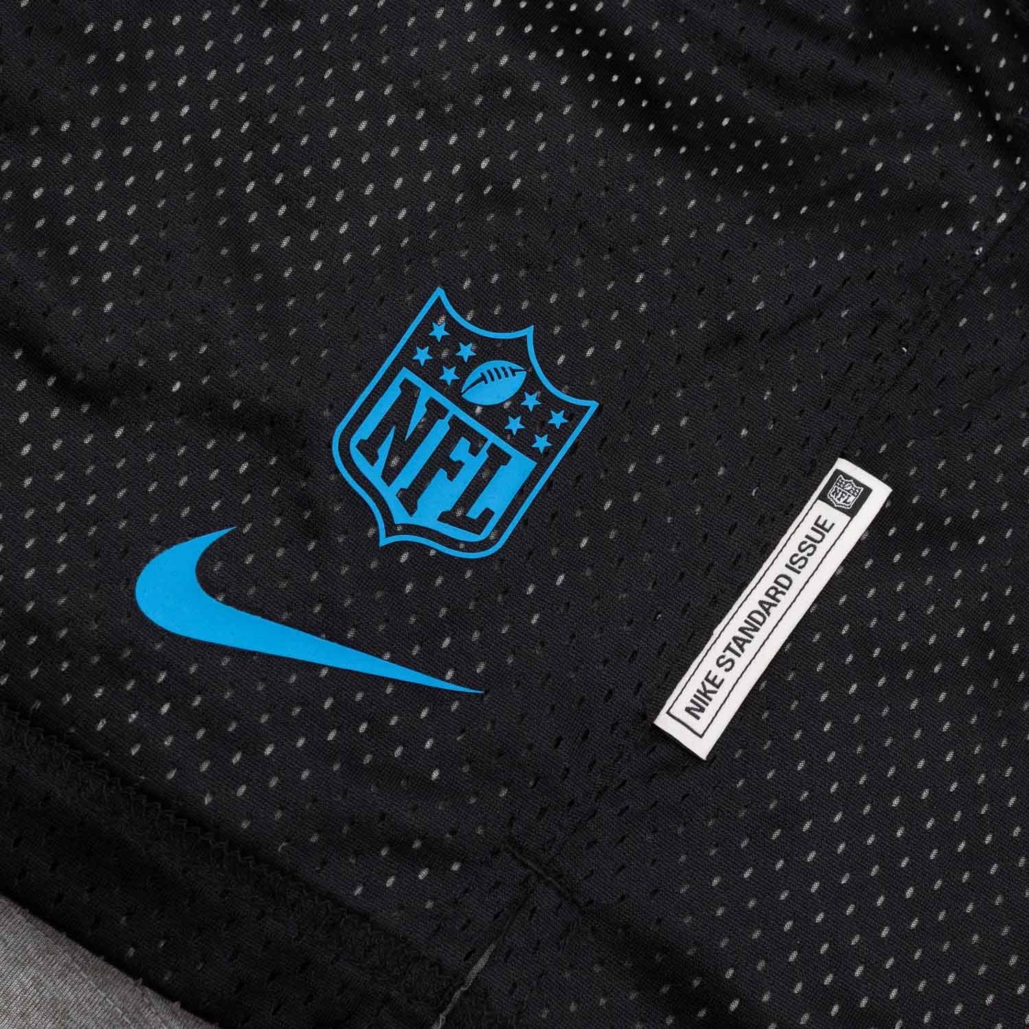 Nike Herren American Football Dri-FIT beidseitig tragbare Reversible Mesh Shorts von deinen Carolina Panthers im offiziellen 2025 NFL On-Field Sideline Design.