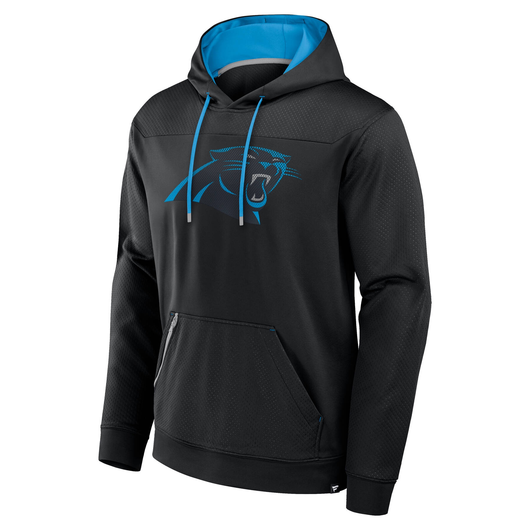 Der Defender Hoodie von Fanatics kombiniert Performance Eigenschaften mit einem modernen Carolina Panthers Teamdesign. Der Hoodie ist im Mesh-Design gehalten und auf der Vorderseite mit dem großen Teamlogo bedruckt. Zusätzlich ist die Kapuze ist in den alternativen Teamfarben ausgestattet.