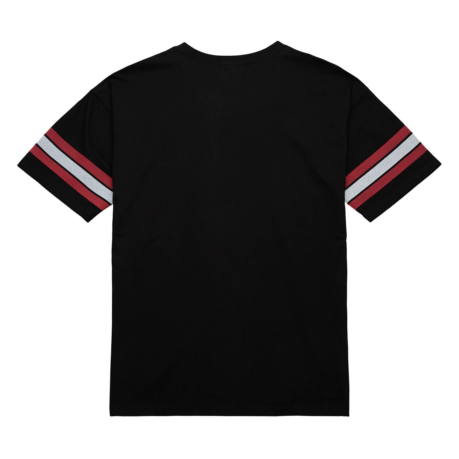 - Gedruckte, leicht „distressed" wirkende Streifen auf den Ärmeln und oberhalb des Saums für einen stylischen Vintage-Effekt.