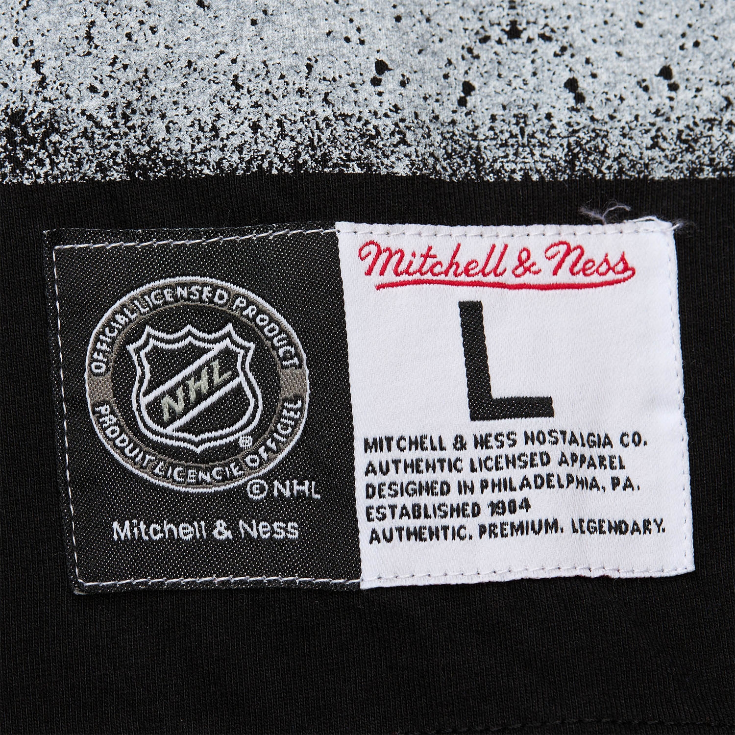 - Gewebtes Mitchell & Ness x Vintage Hockey Jock Tag am Saum für den authentischen NHL-Look.