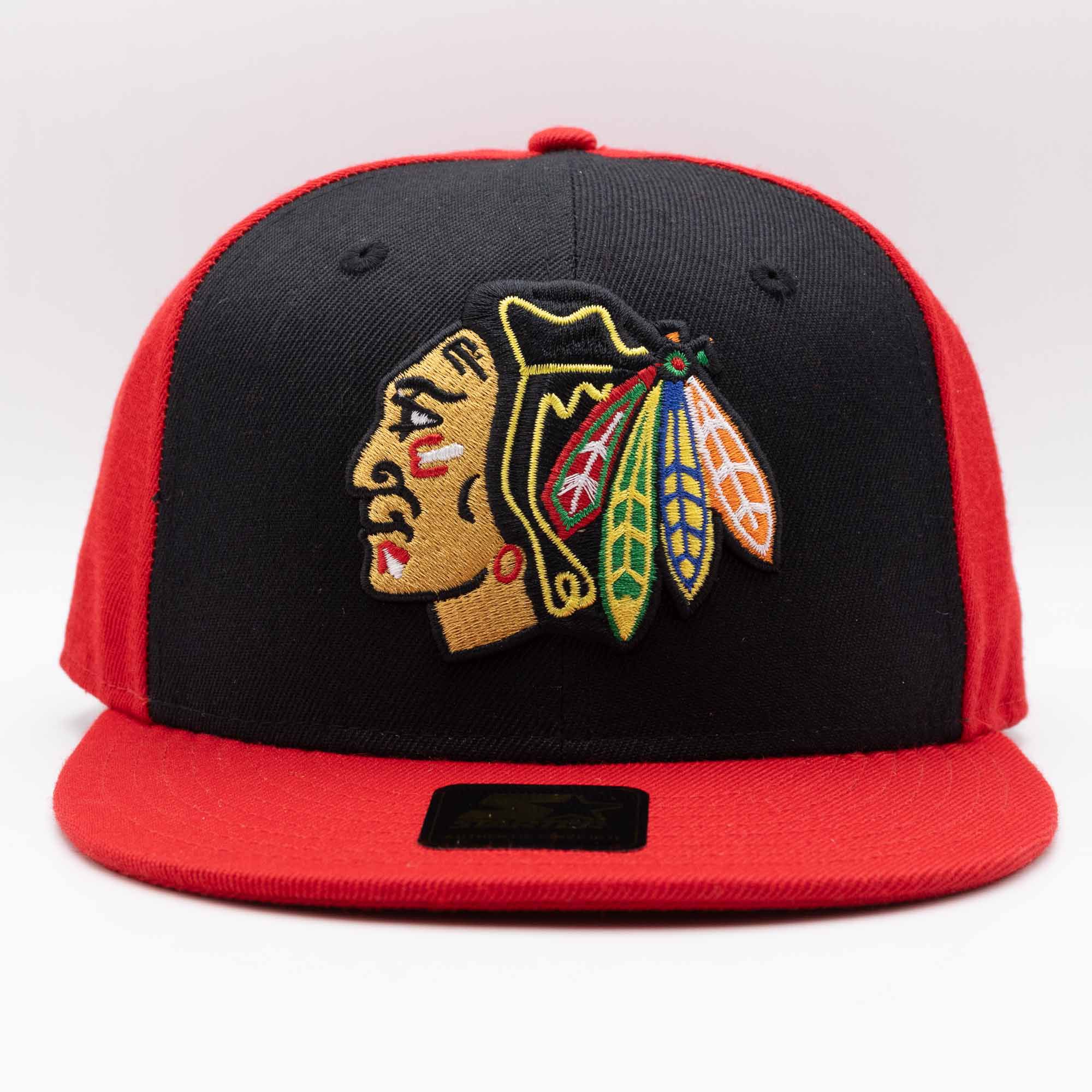 Starter NHL Adjustable Snapback Cap von deinen Chicago Blackhawks im zweifarbigen Team Logo Style.