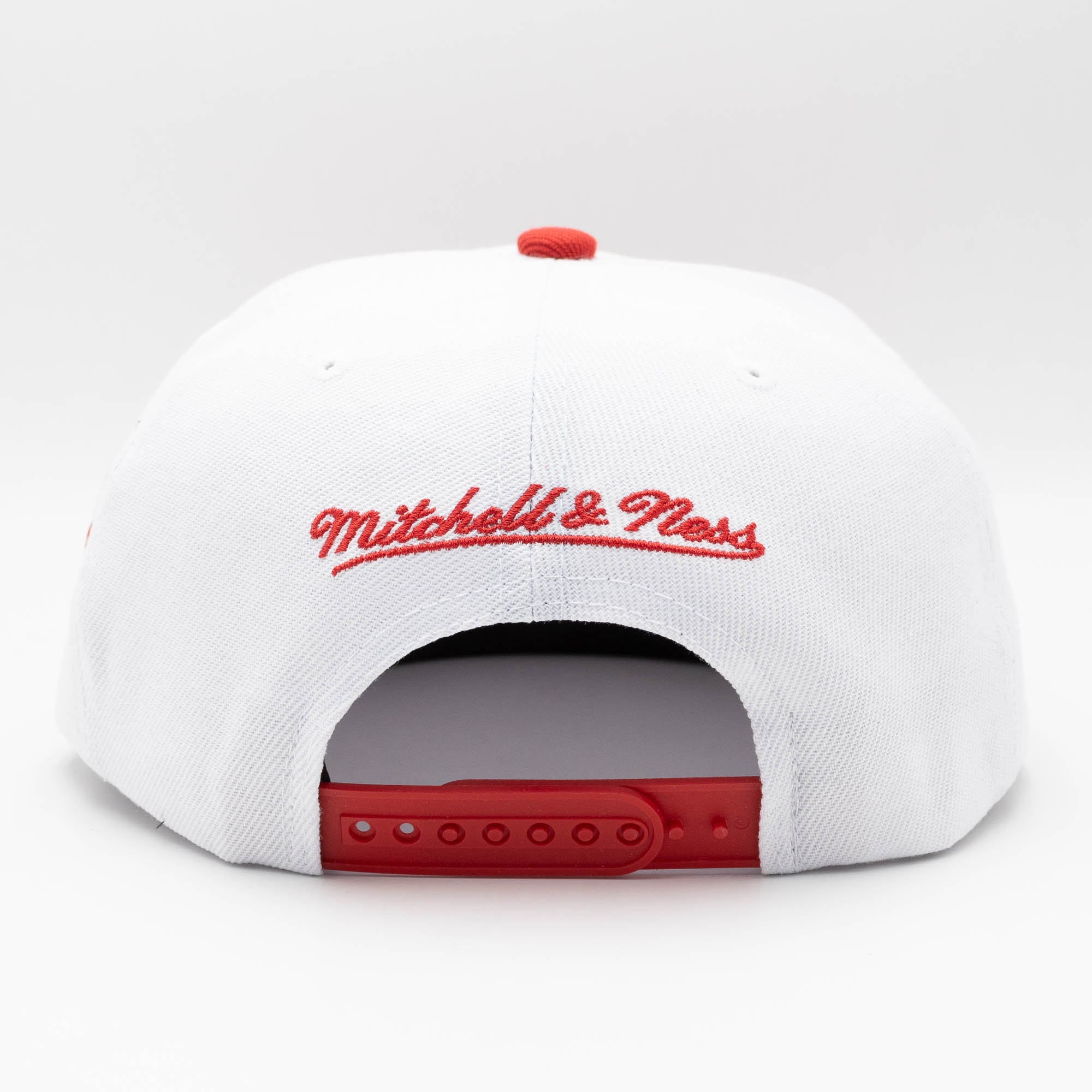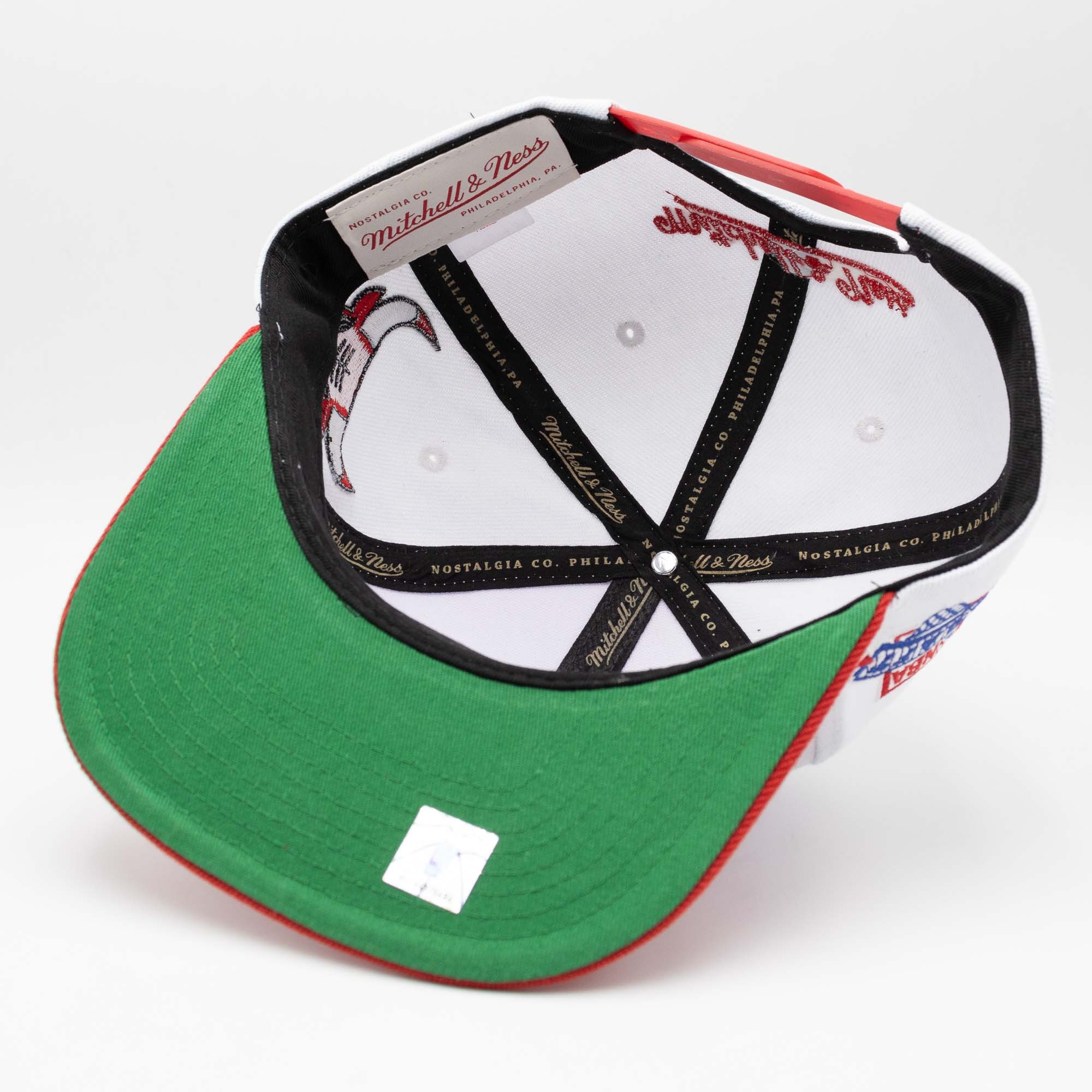 Klassische Mitchell & Ness Original Fit Snapback mit schlanken, flachen Schirm und hoher, fester Krone. Für mehr Atmungsaktivität sorgen die gestickten Ösen; das innenseitige Schweißband erhöht den Tragekomfort. Den flachen Capschirm kannst du nach Belieben in die gewünschte Form biegen. Der Snapback-Verschluss ermöglicht eine einfache Anpassung und gewährleistet einen bequemen und sicheren Sitz für alle Kopfgrößen.