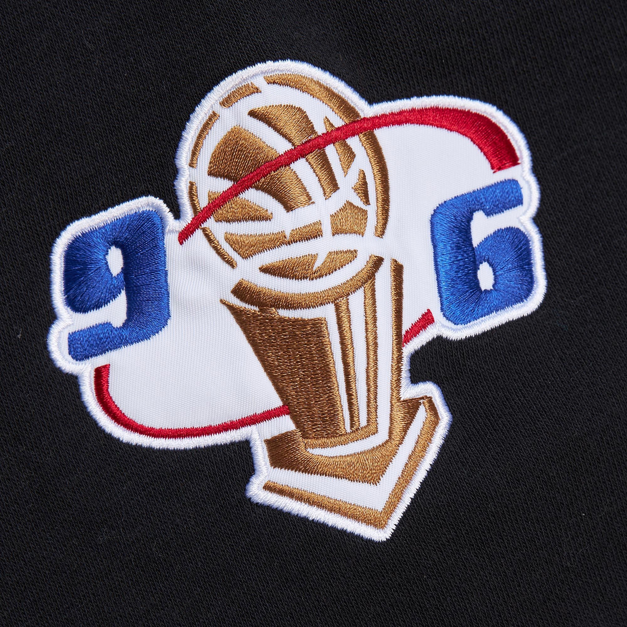 - Detailreiche Verzierungen: Die Rückseite beeindruckt mit einem großen NBA Champions Logo, und die Ärmel sind mit den klassischen Logos bestickt. Abgerundet wird der Vintage-Look durch aufgenähte Ärmelstreifen und den Mitchell & Ness Schriftzug am rechten Ärmelende.